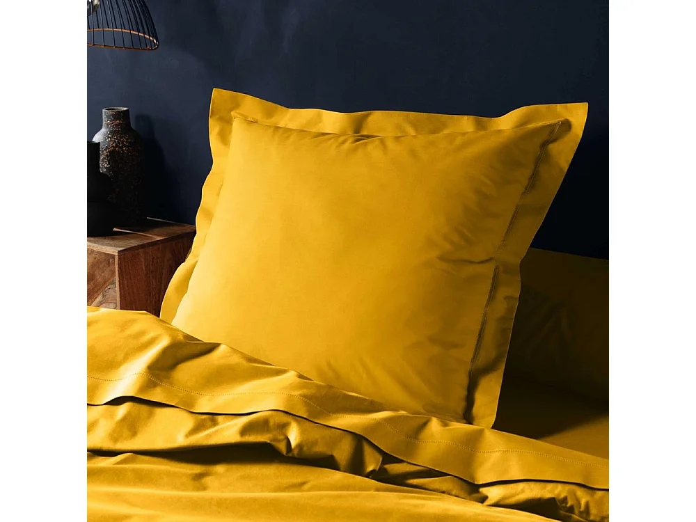 Une Taie d'oreiller Couleur Curry en coton Bio