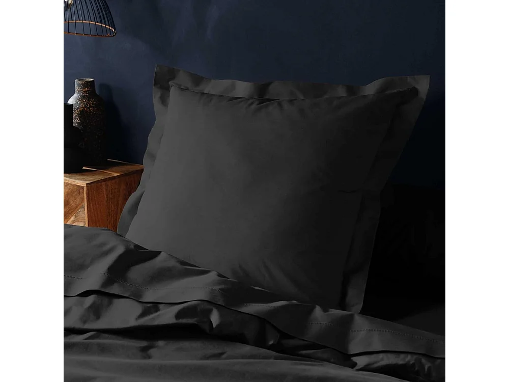 Taie d'oreiller en coton 57 fils 50x70 cm UNI noir, par Soleil d'ocre