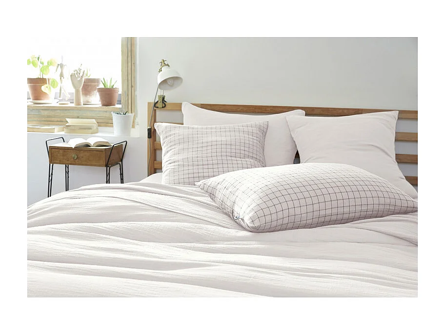 Taie d'oreiller Tissé-teint petits carreaux Déco "Gaïa Mix" 60 x 60 cm & 50 x 70 cm "Gaze de Coton"