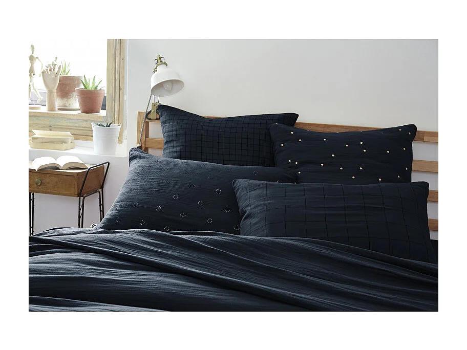 Taie d'oreiller Tissé-teint petits carreaux Déco "Gaïa Mix" 60 x 60 cm & 50 x 70 cm "Gaze de Coton"