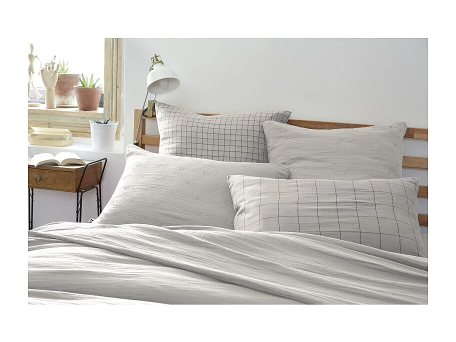 Taie d'oreiller Tissé-teint petits carreaux Déco "Gaïa Mix" 60 x 60 cm & 50 x 70 cm "Gaze de Coton"