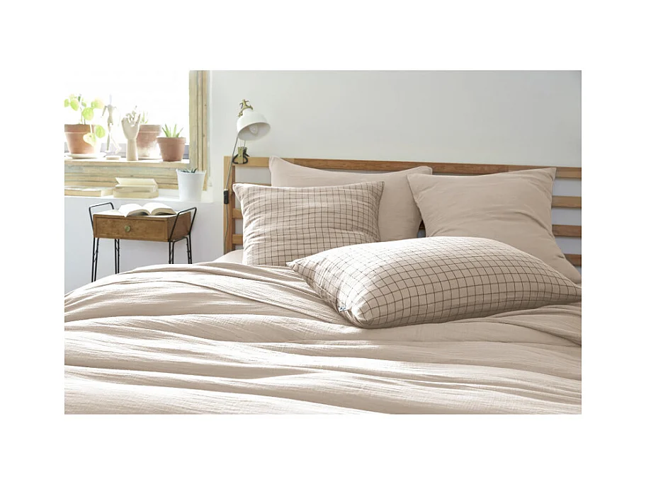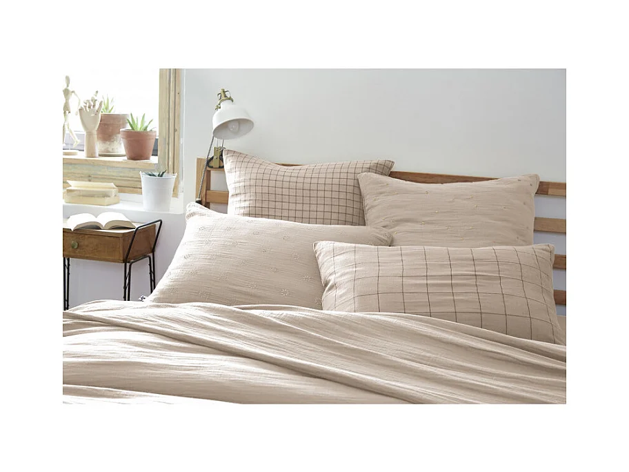 Taie d'oreiller Tissé-teint petits carreaux Déco "Gaïa Mix" 60 x 60 cm & 50 x 70 cm "Gaze de Coton"
