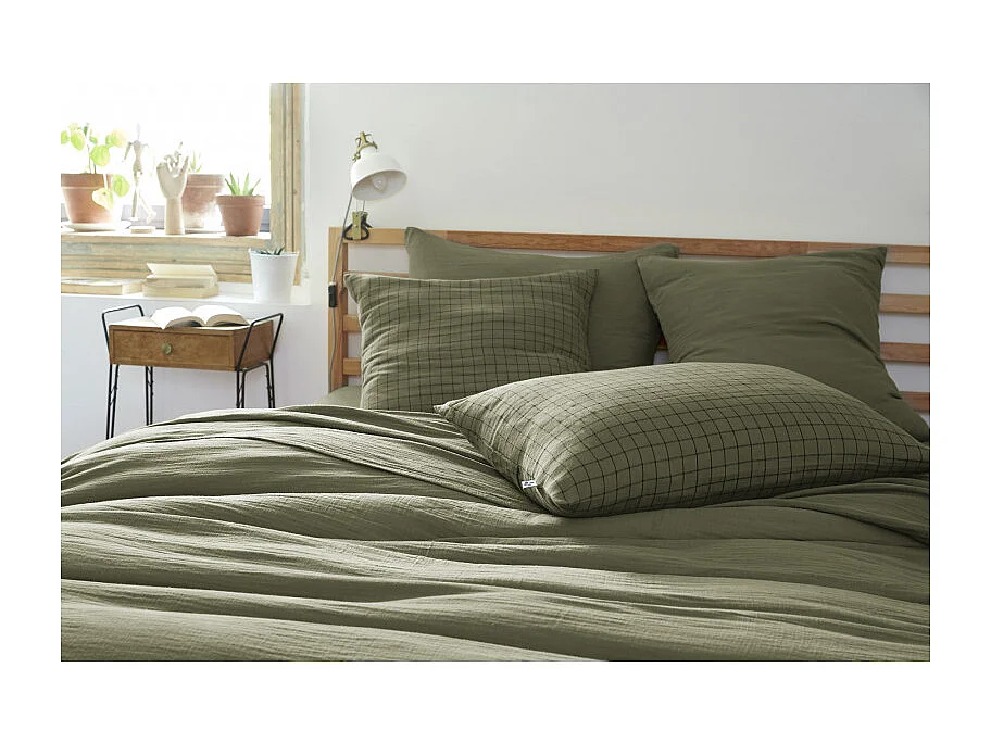 Taie d'oreiller Tissé-teint grands carreaux Déco "Gaïa Match" 60 x 60 cm & 50 x 70 cm "Gaze de Coton"
