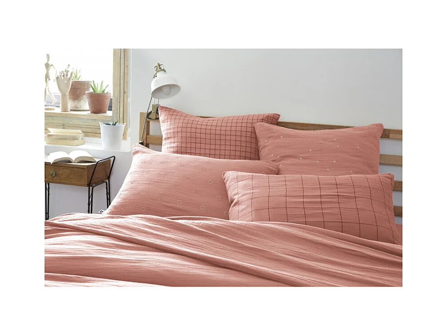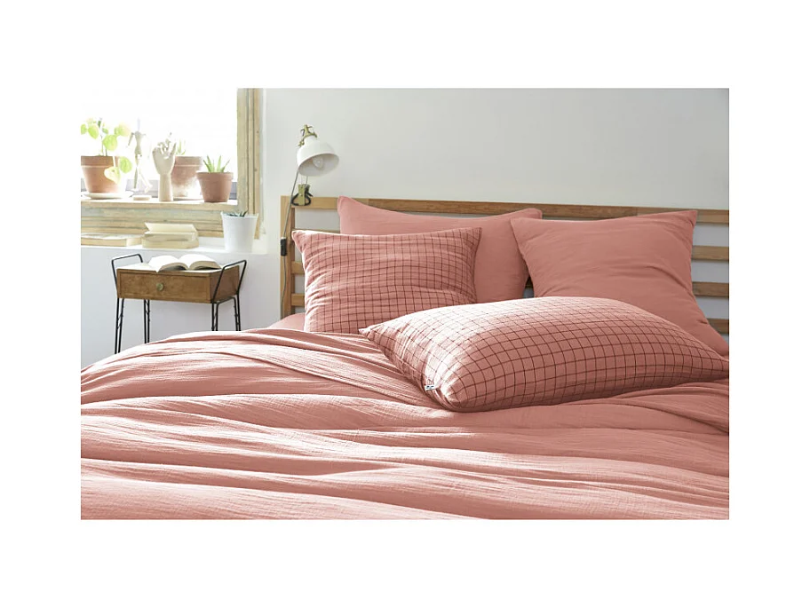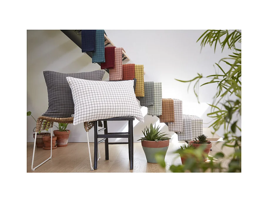 Taie d'oreiller Tissé-teint petits carreaux Déco "Gaïa Mix" 60 x 60 cm & 50 x 70 cm "Gaze de Coton"