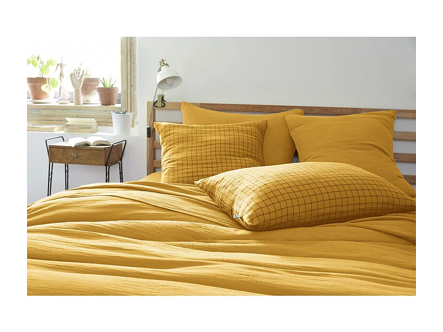 Taie d'oreiller double gaze de coton jaune safran 50x70 cm