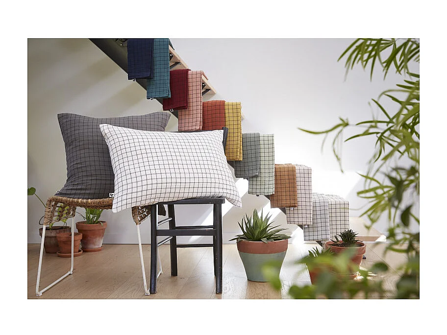 Taie d'oreiller Tissé-teint grands carreaux Déco "Gaïa Match" 60 x 60 cm & 50 x 70 cm "Gaze de Coton"