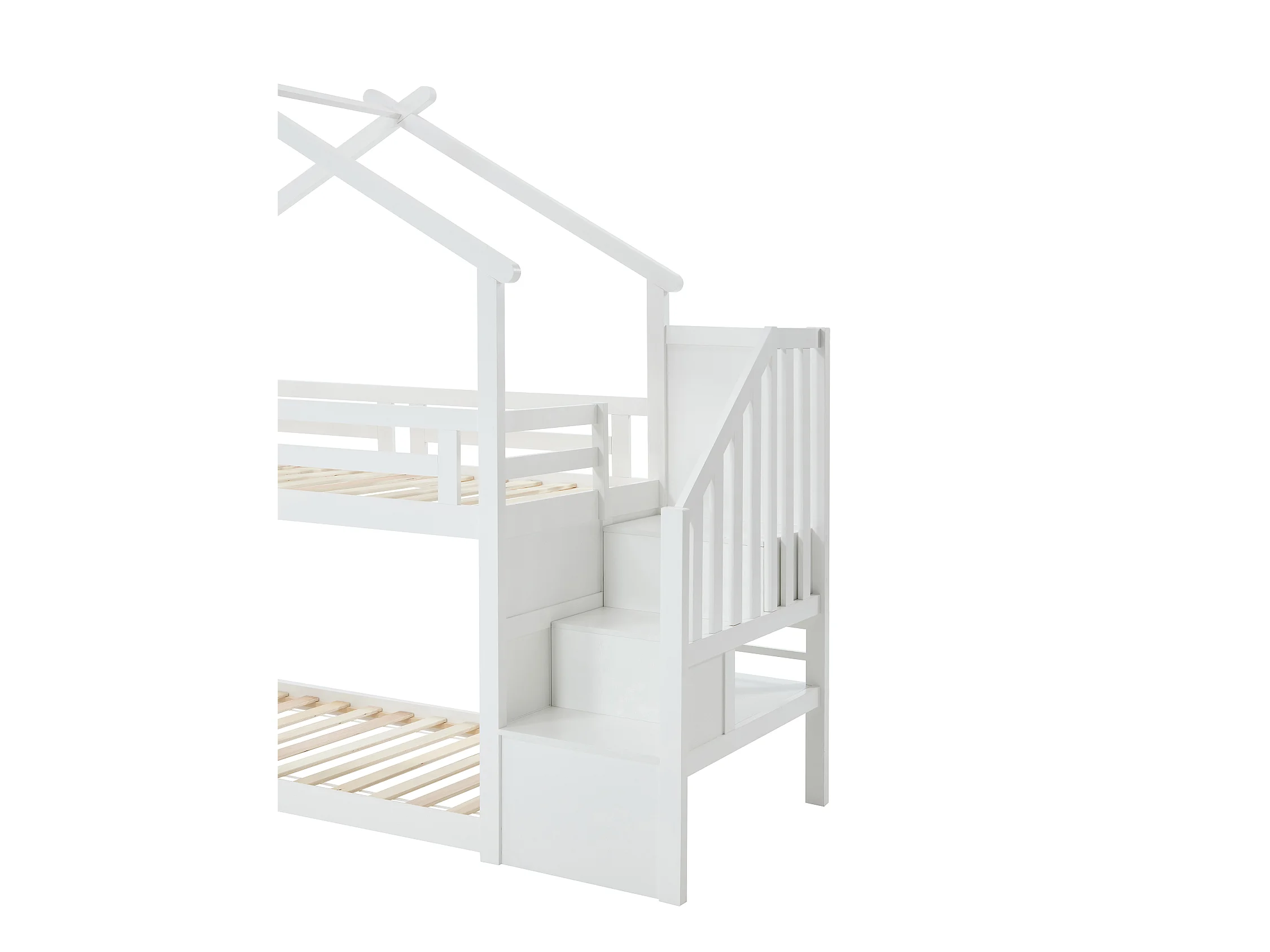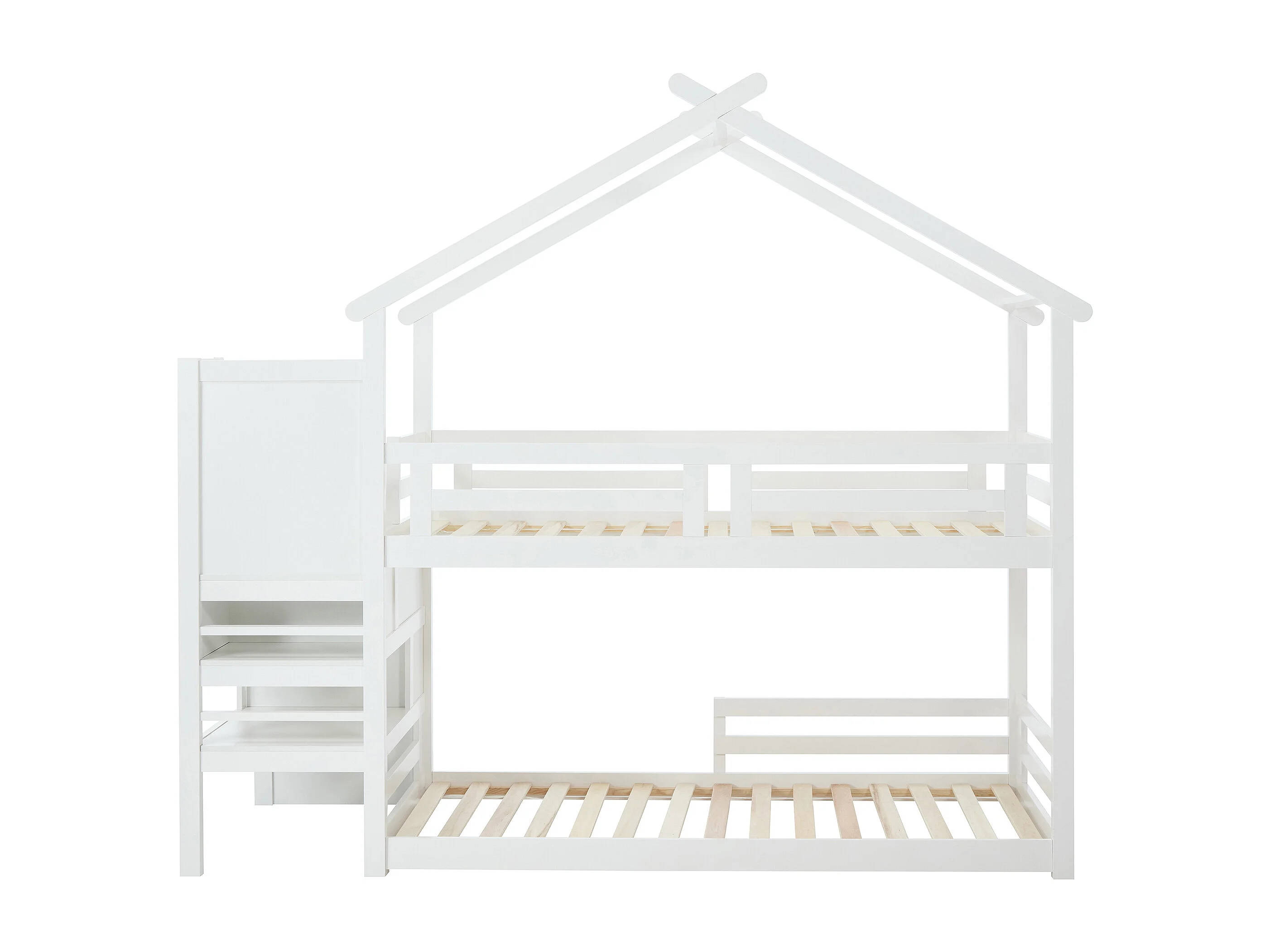 Lit superposé cabane 90 x 190 cm - Pin et MDF - Blanc - TALETY