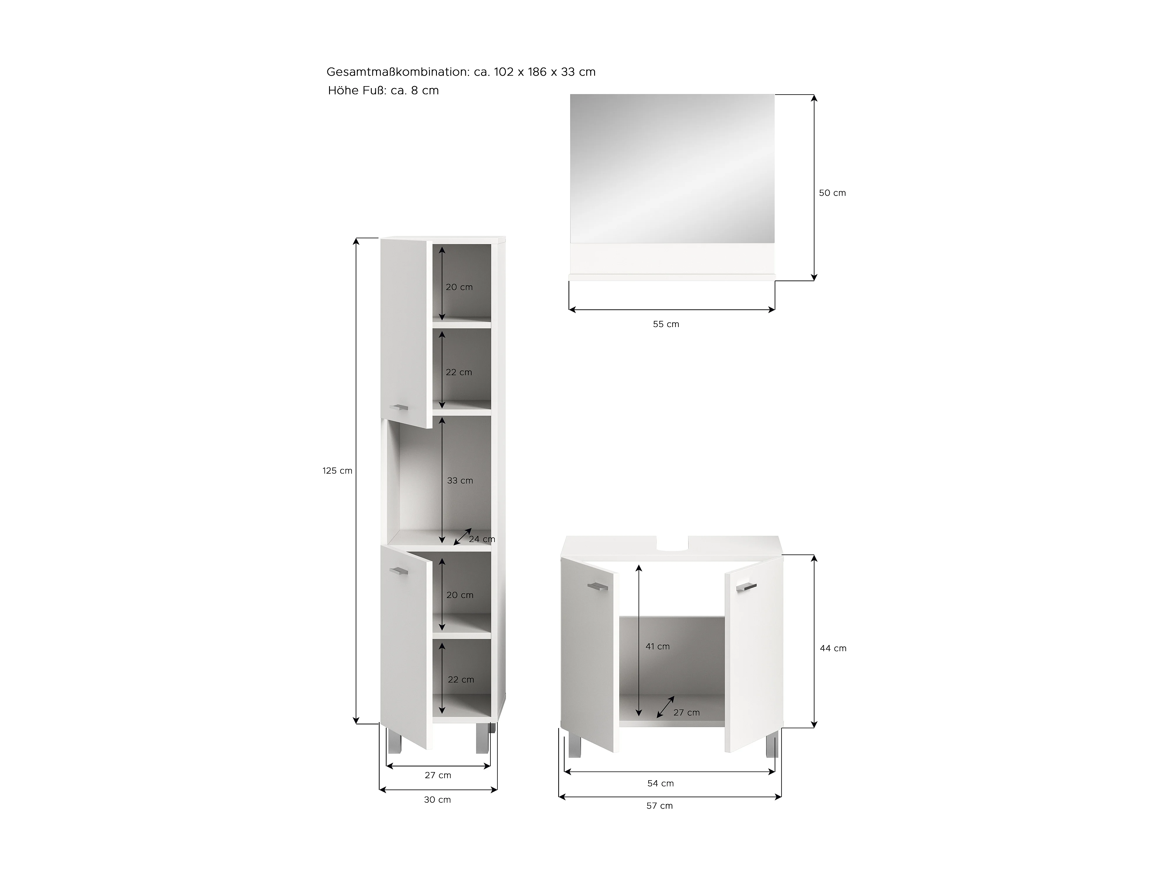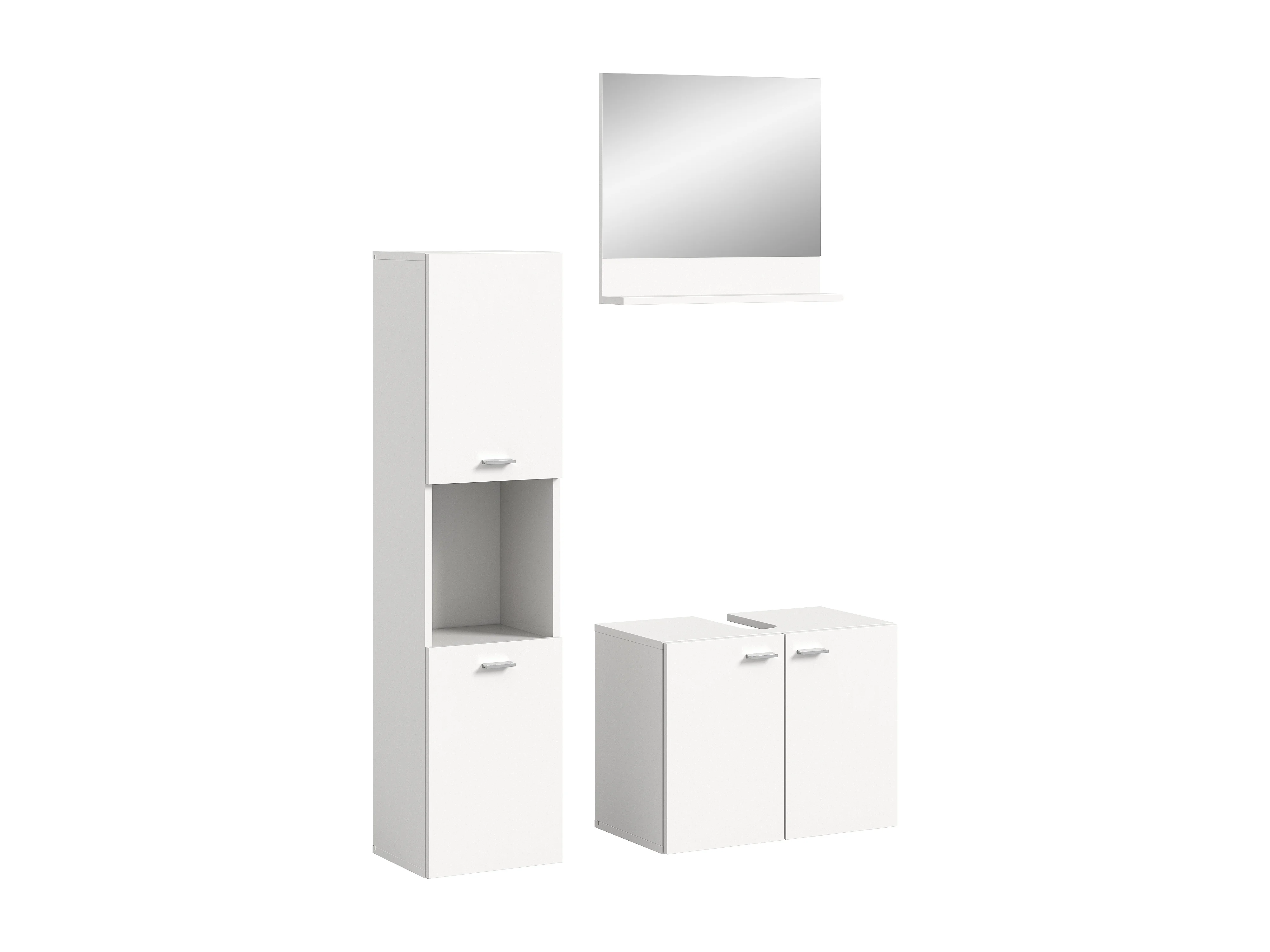 Tambo - Ensemble de 3 meubles de salle de bains (L/H/P : 102x186x33 cm) en mélaminé blanc, vasque non incluse