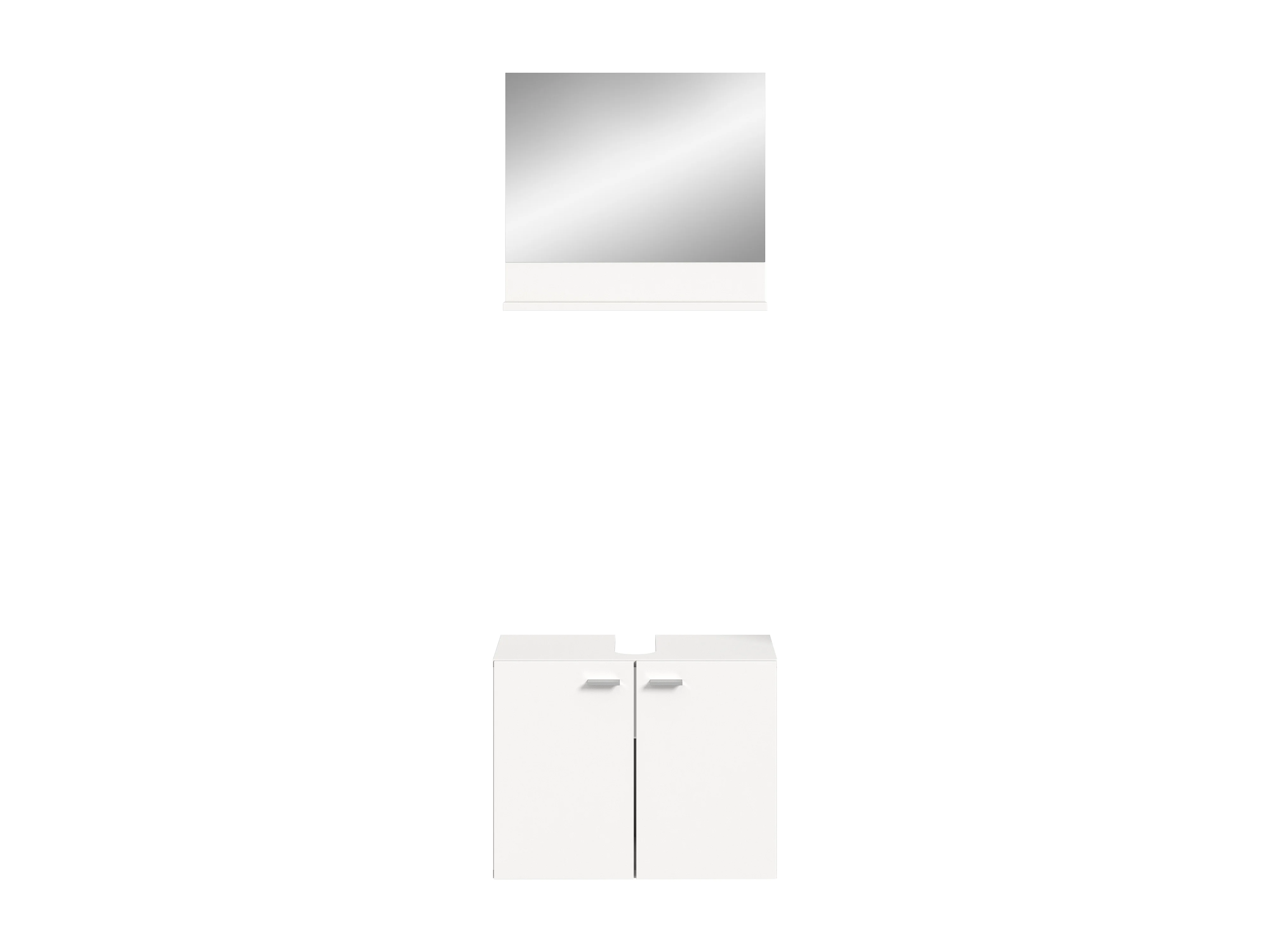 Tambo - Meuble sous lavabo et miroir (L/H/P : 57x44x33 cm) en mélaminé blanc, vasque non incluse