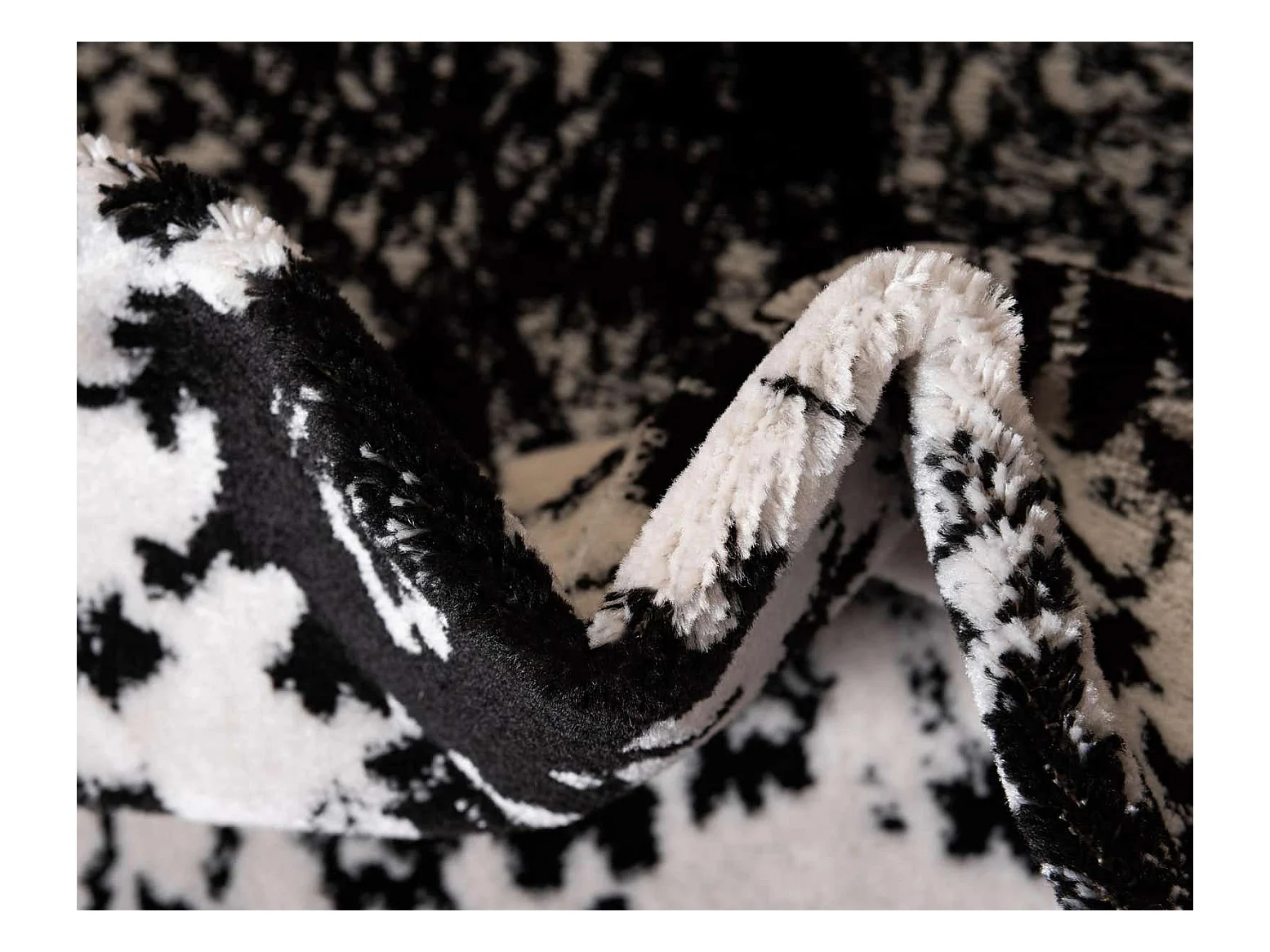 Tapis shaggy à poils longs moderne noir et crème Ø 240cm