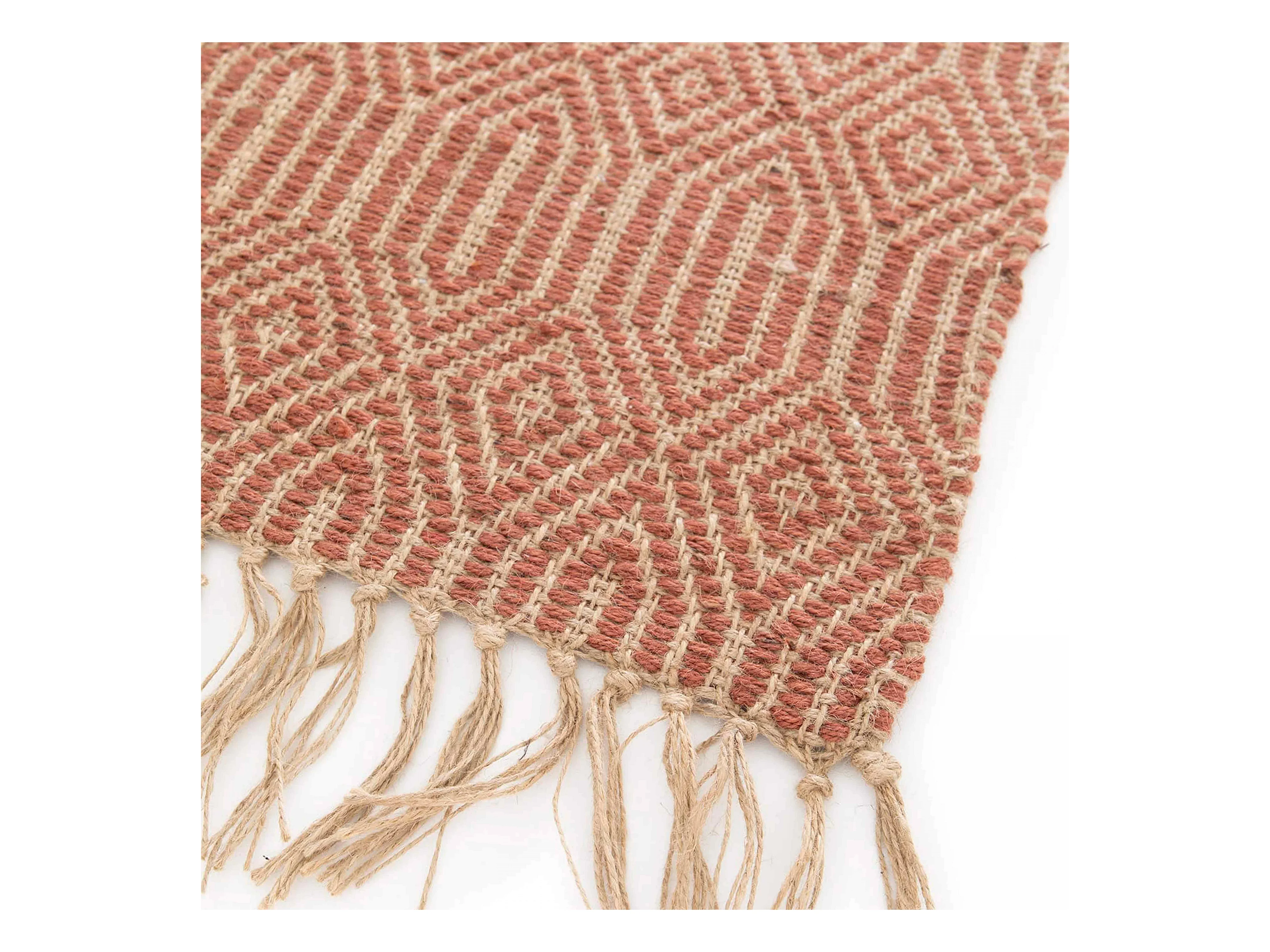 Tapis à franges en jute naturel tissé main terracotta 200 x 290 cm