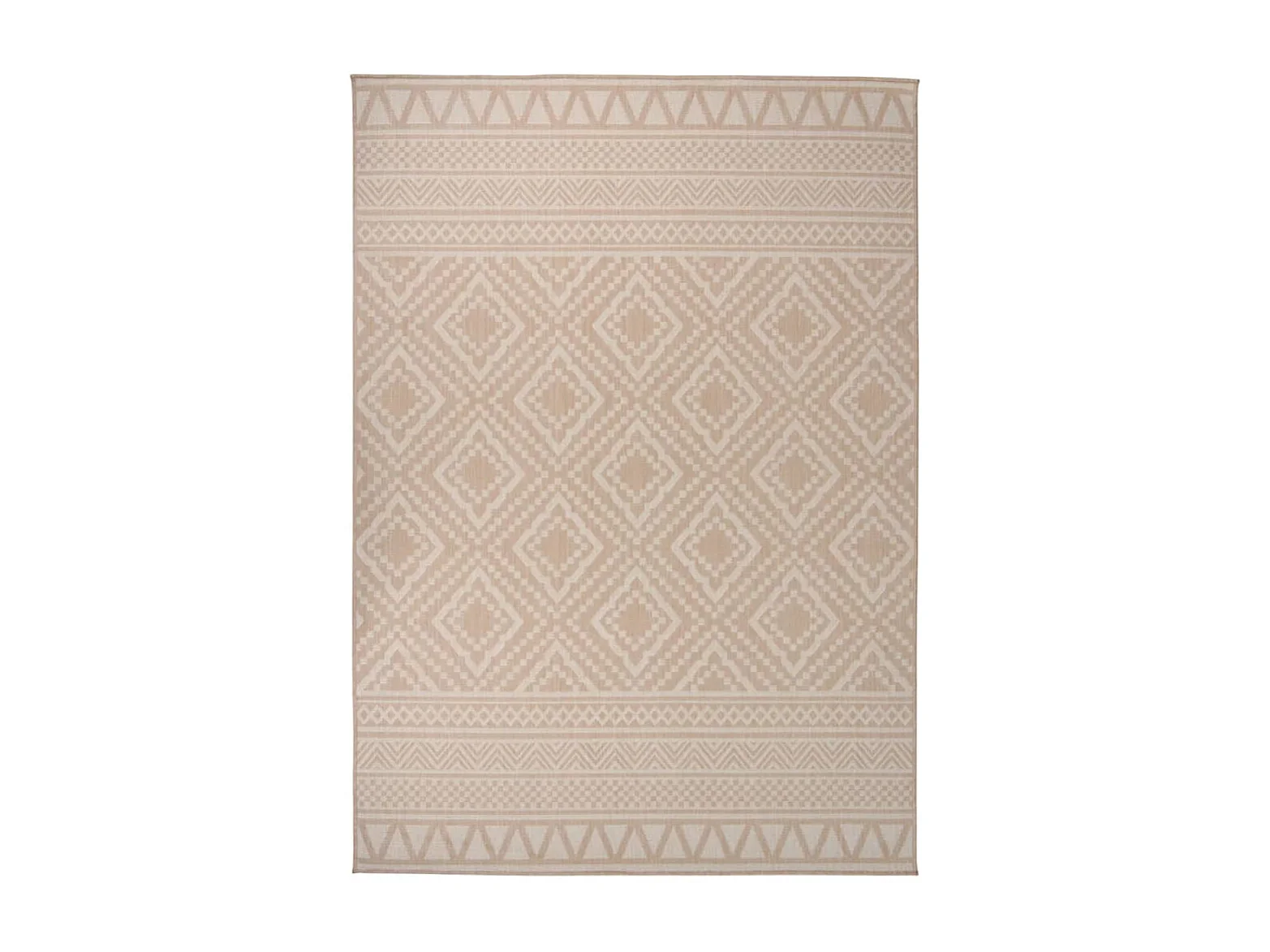 Tapis d'extérieur réversible imperméable motifs géométriques - dim. 121L x 182l cm - PP marron crème