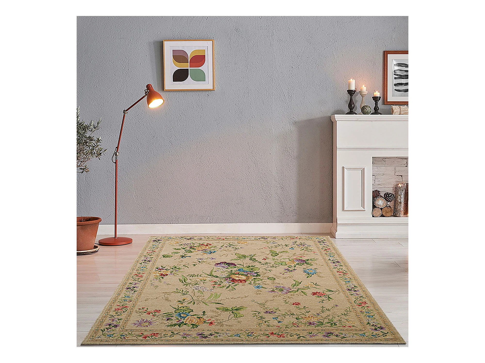 Tapis avec bordure et motif floral 120x180 cm beige Flomi