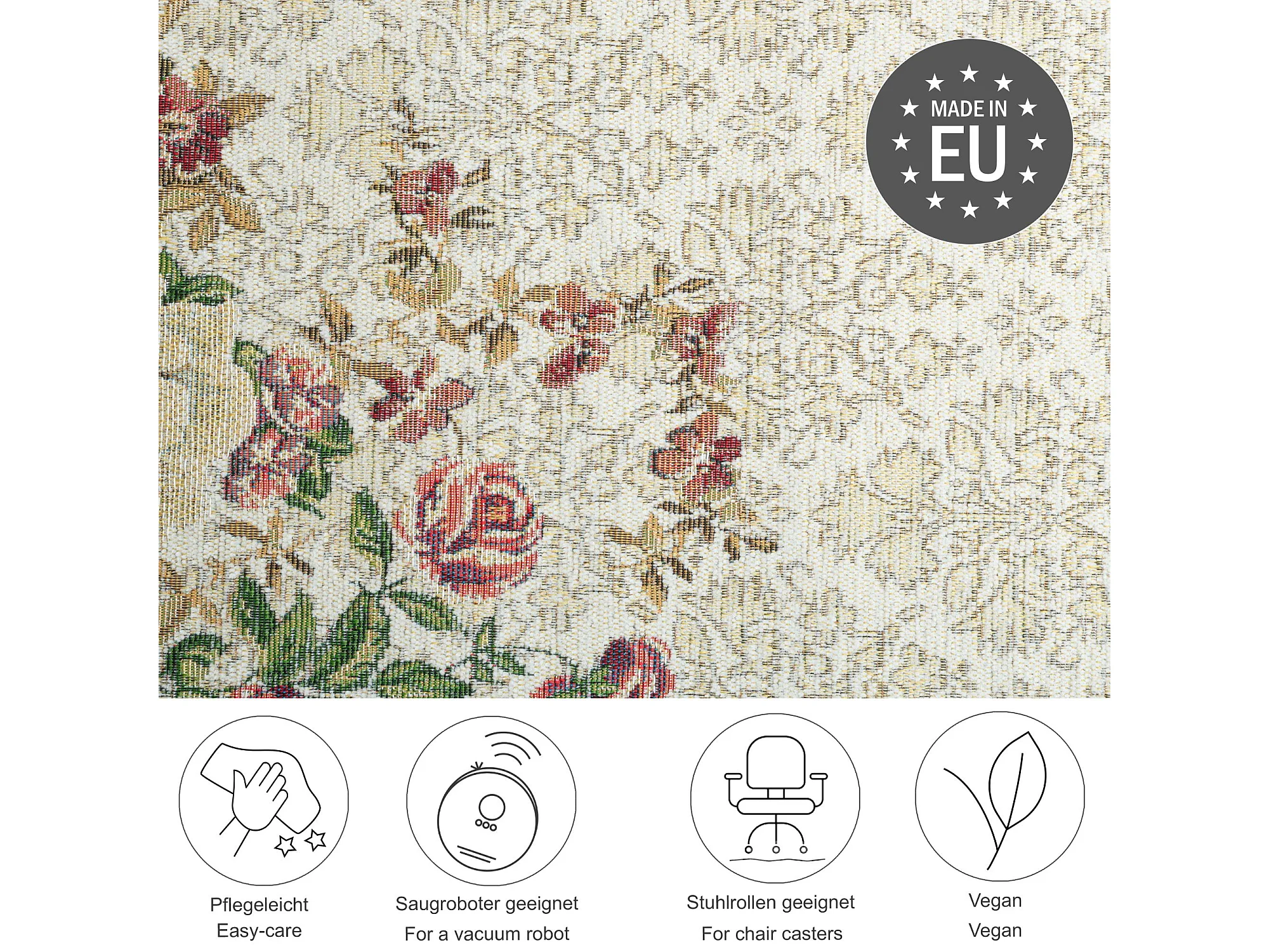 Tapis avec bordure et motif floral 60x90 cm crème Flomi