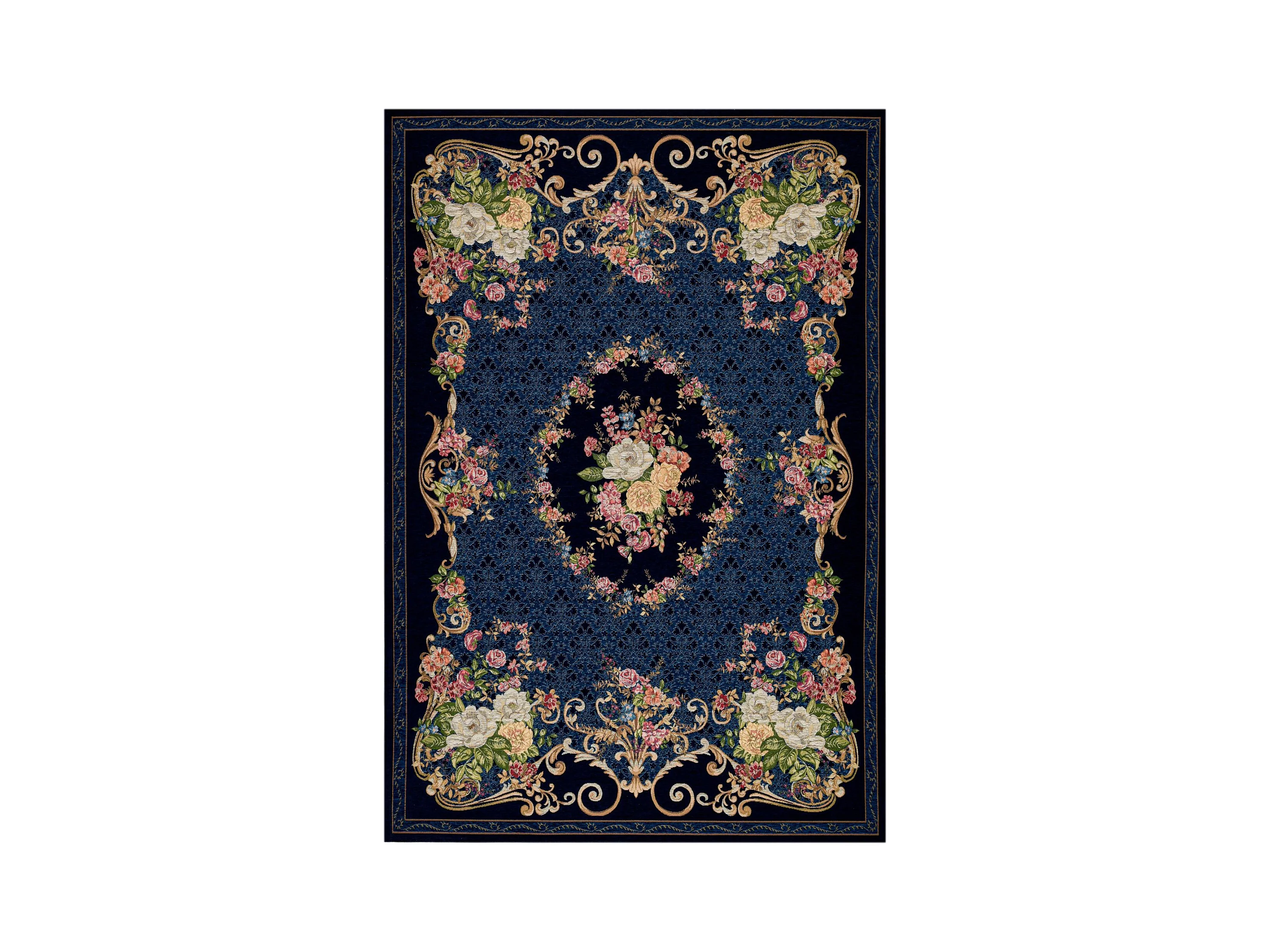 Tapis avec bordure et motif floral 240x340 cm bleu Flomi
