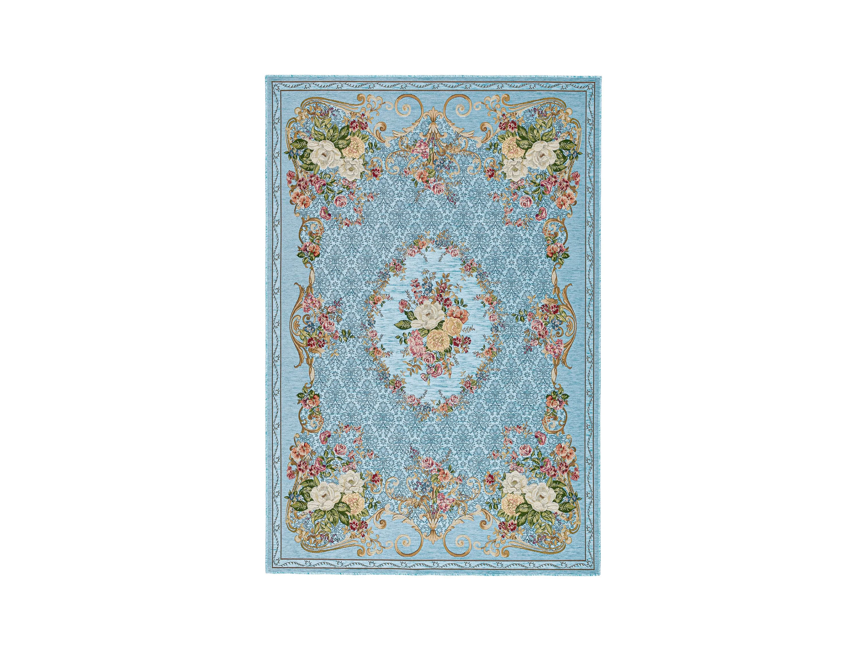 Tapis avec bordure et motif floral 240x340 cm bleu Flomi