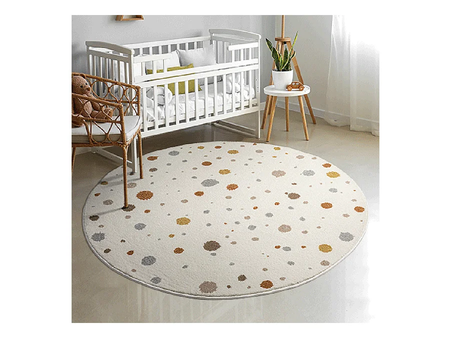 Tapis Beat Kids Moderne Bébé Fille Garçon - Crème - 120 cm Ronde