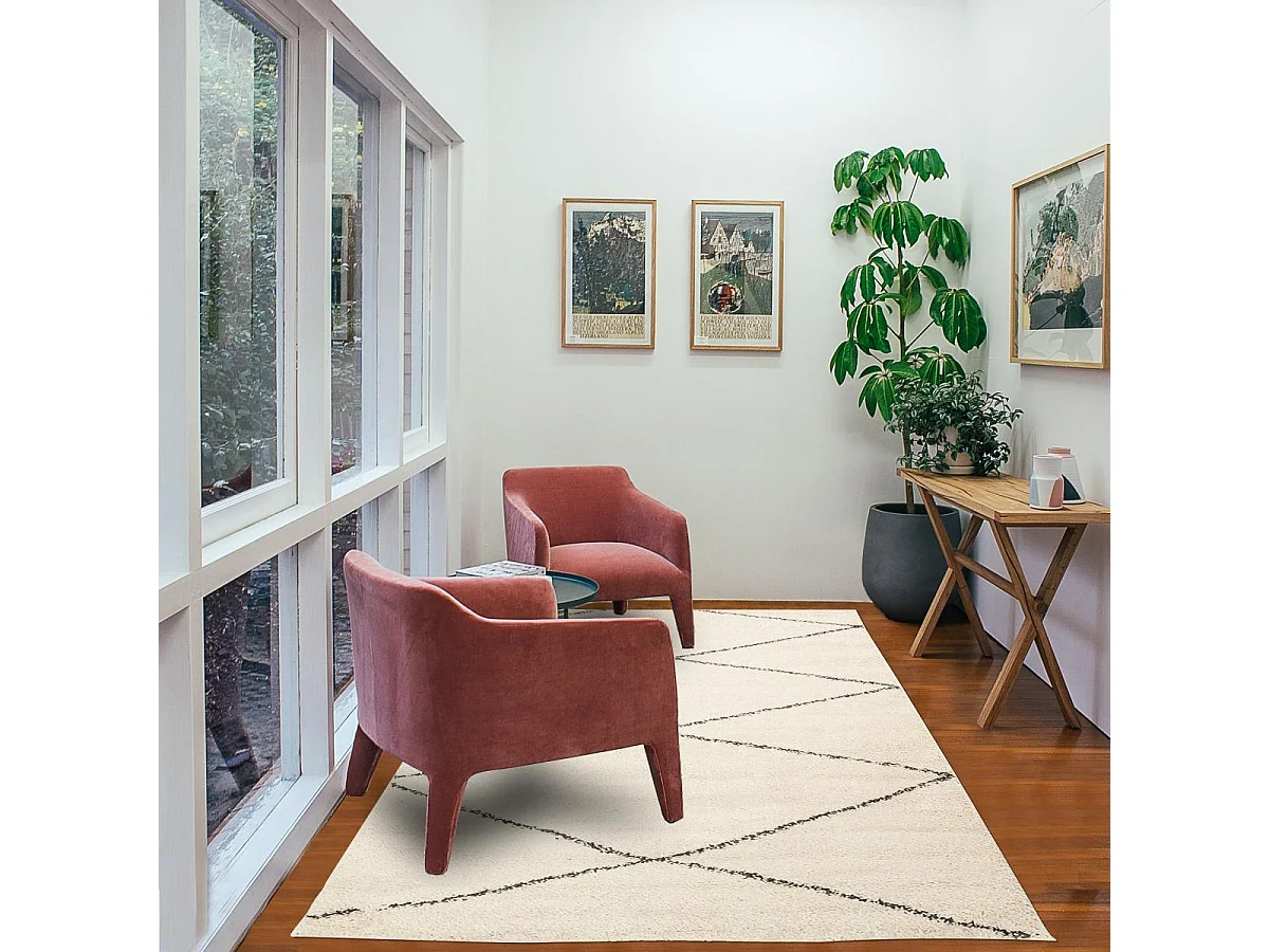 Tapis berbère 200x290 tissé motif losange SHAGGY A crème