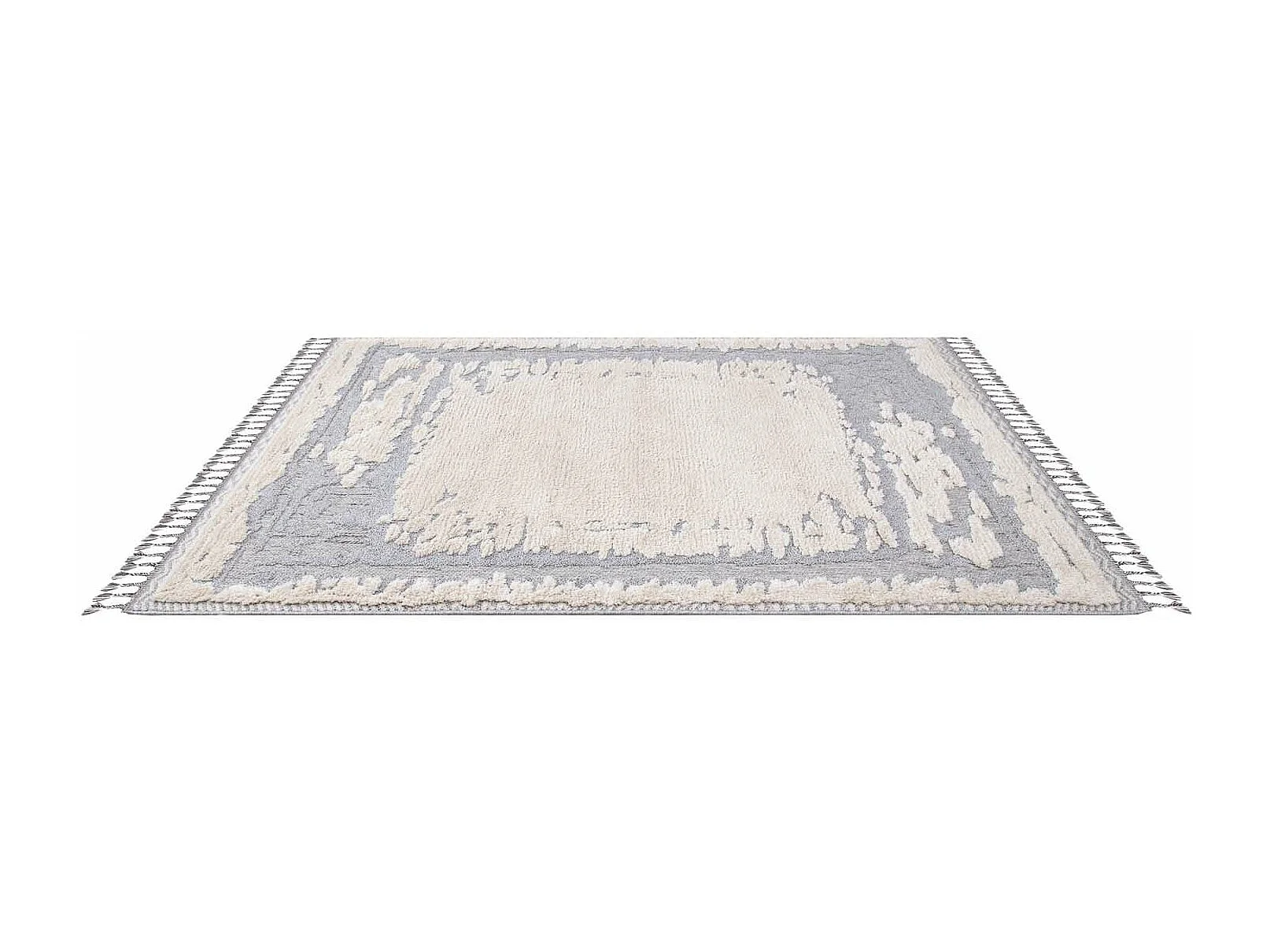 Tapis Boho Chic à franges tressées Crème/Gris/Bleu 120x170cm