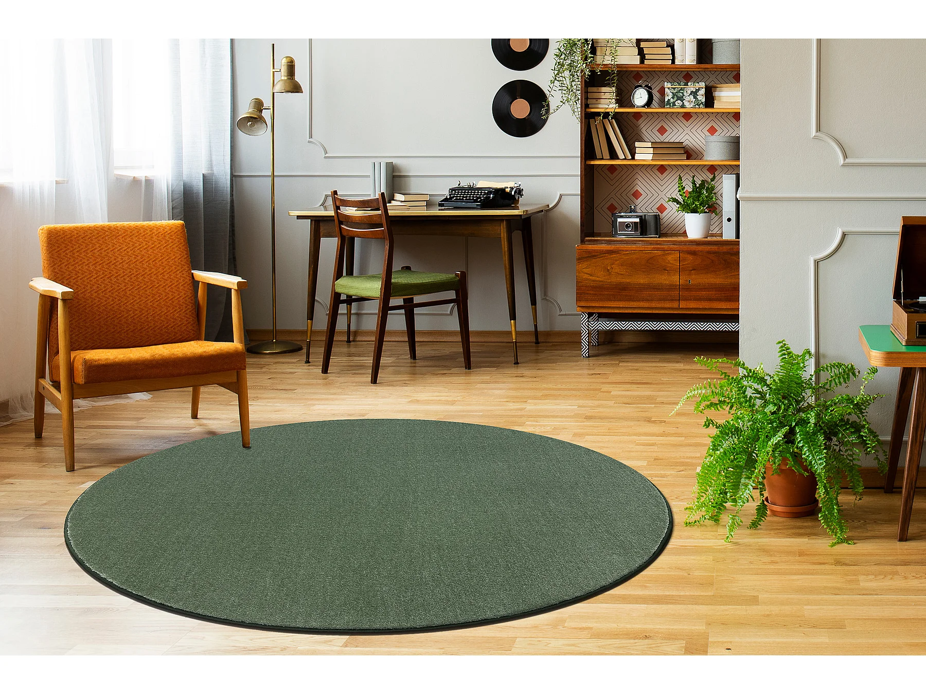 Tapis SOFTY cercle plaine couleur unie forest vert cercle 120 cm