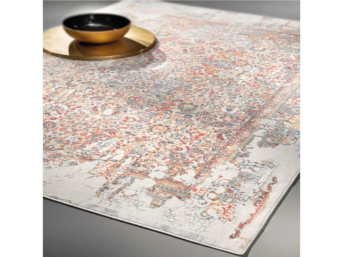 tapis chambre 160x225 tissé crème et rouge rectangle motif oriental Baia