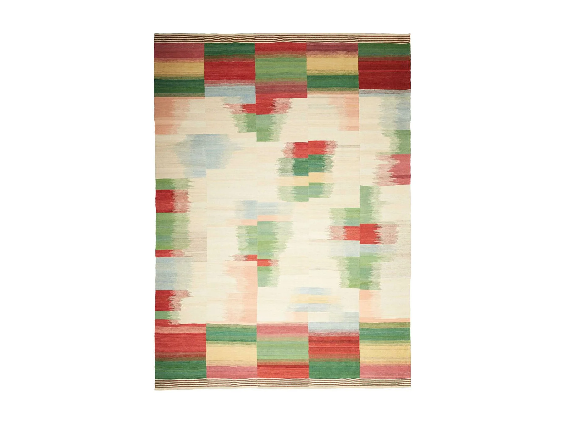 Authentique tapis d'Orient 250x352 kilim fait main en laine vert et rouge A 6