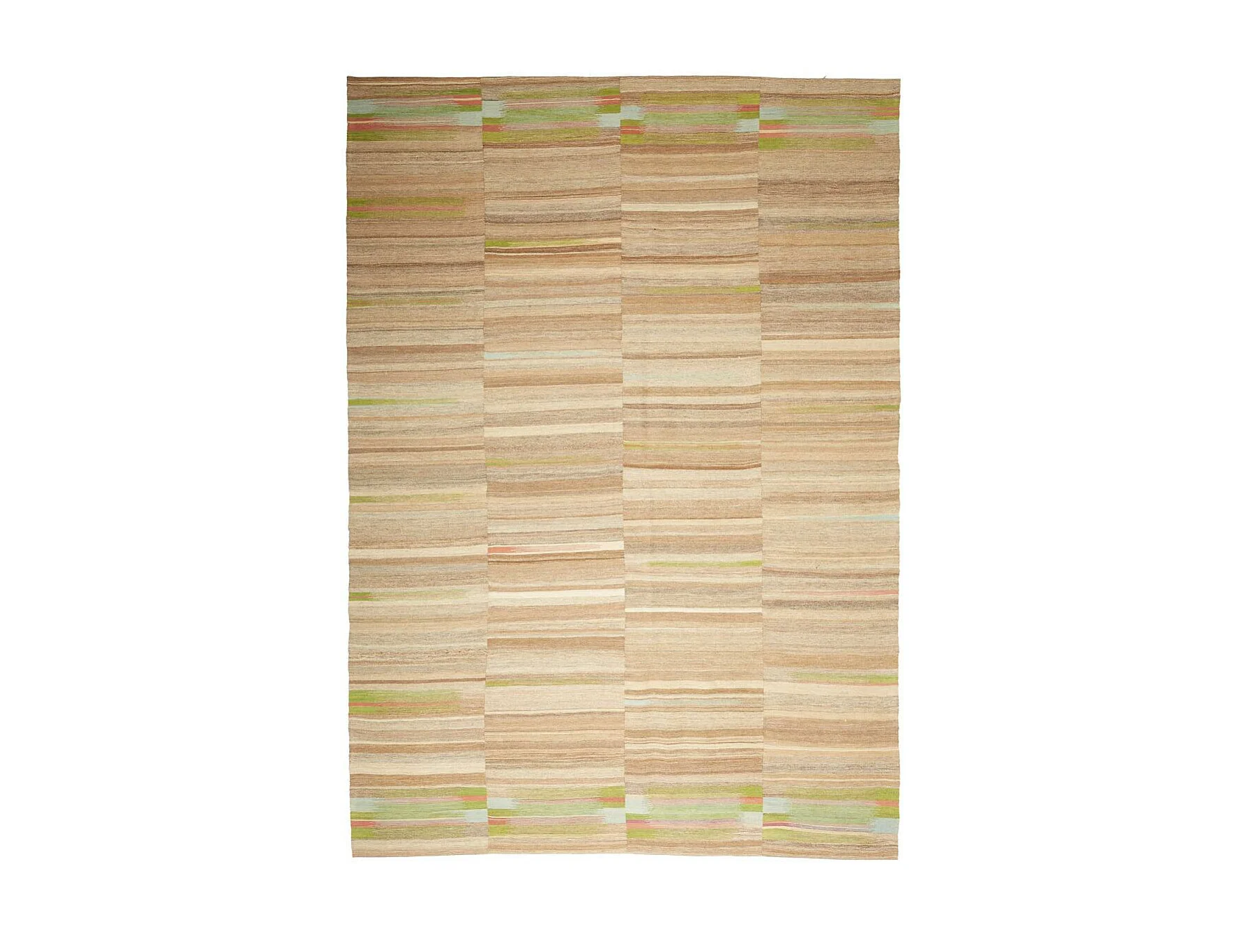 Authentique tapis d'Orient 221x315 kilim fait main en laine marron et beige J