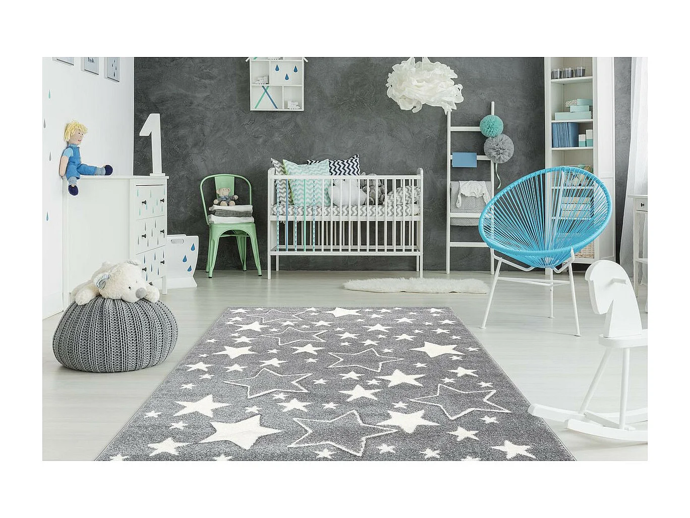 Tapis de Chambre Enfant Étoiles "Tamworth" Argent 80 x 150 cm