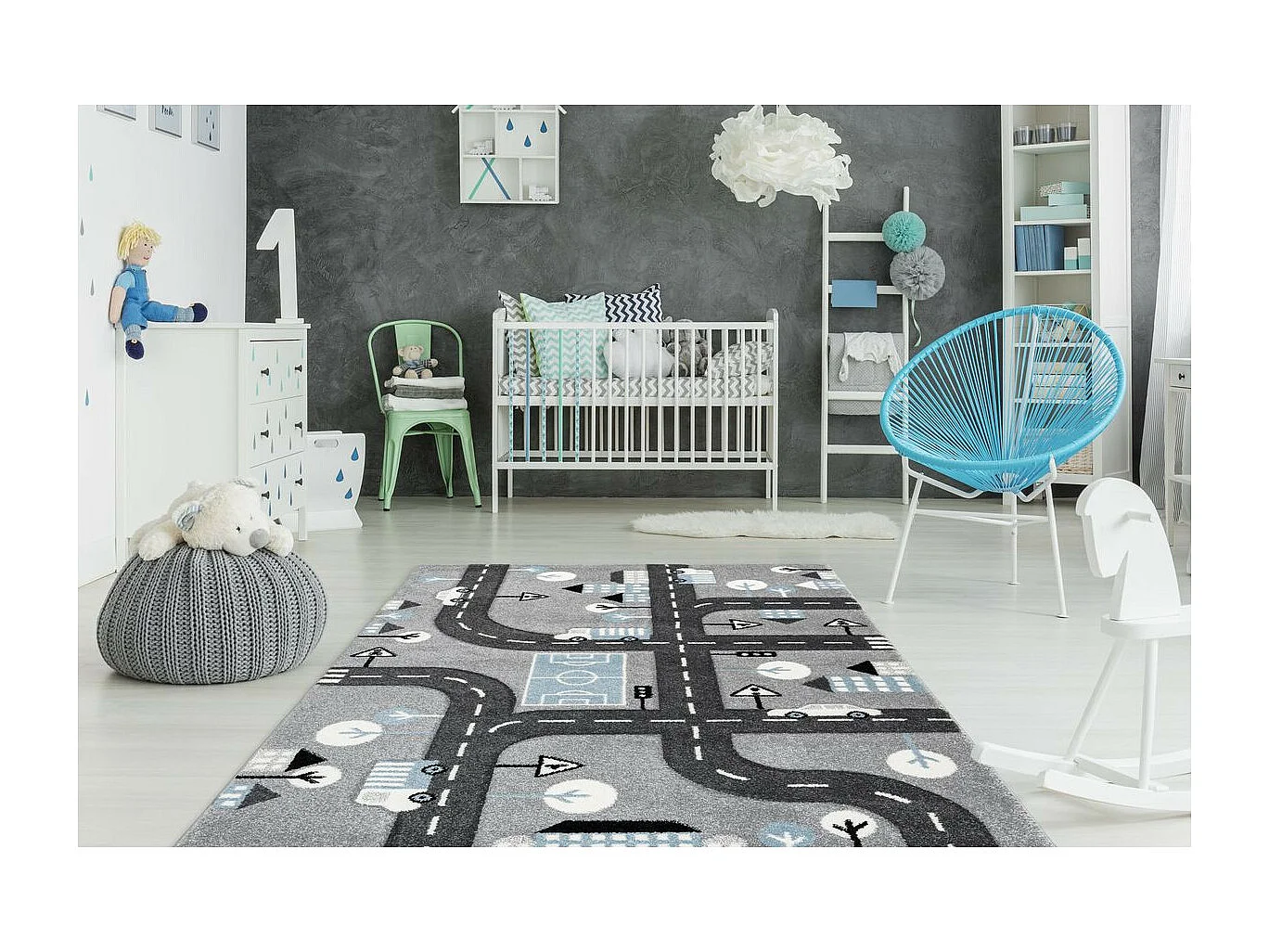 Tapis de Chambre Enfant Voiture "Marree" Argent 80 x 150 cm