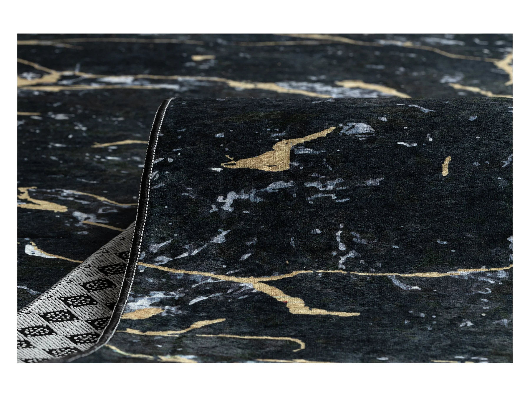 TAPIS DE COULOIR antidérapant LOTUS GALACTIC 9523 Marbre noir / L'or 80x990 cm