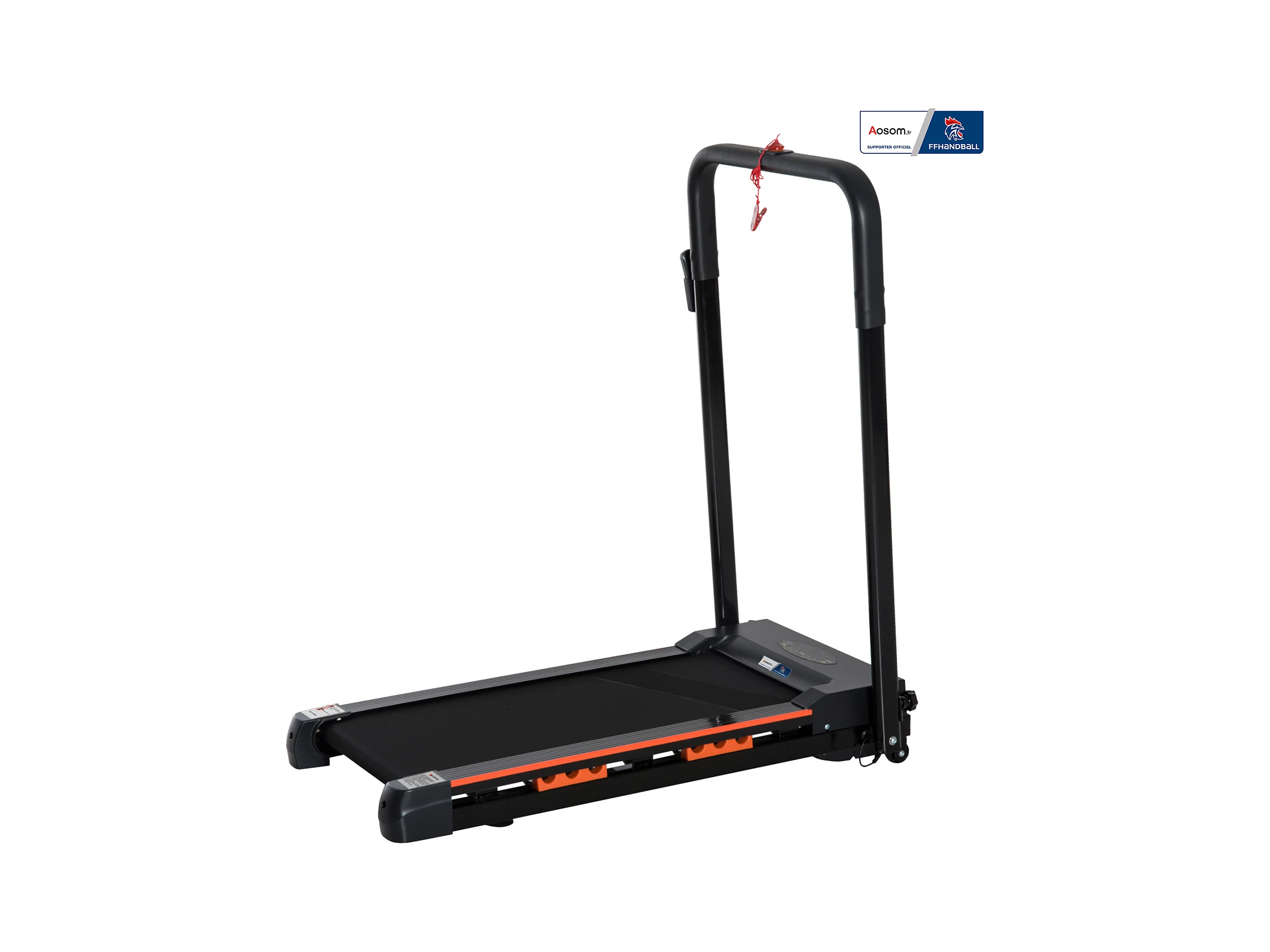 Tapis de course pliable - tapis de marche 6 Km/h max. 370 W - collaboration Aosom.fr x FFHandball - orange noir