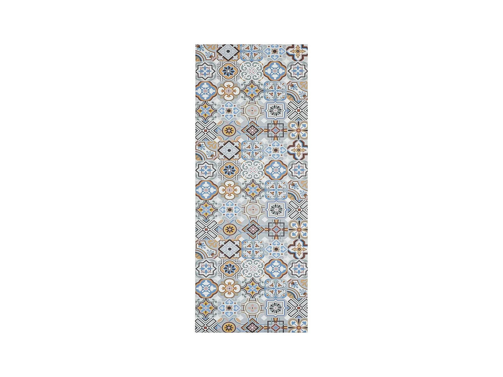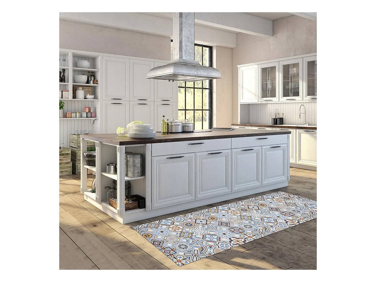 tapis cuisine 120x170 en PVC bleu et gris motif géométrique PKIT
