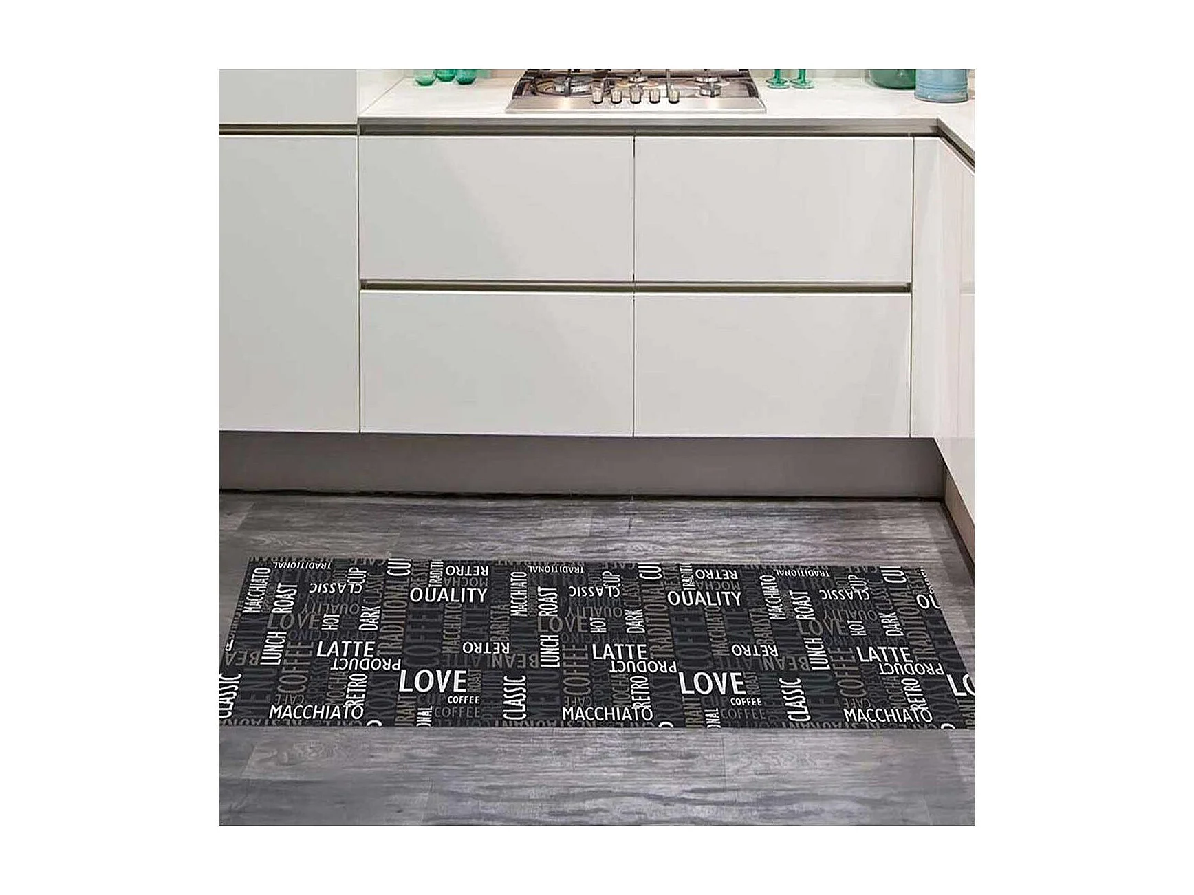 tapis cuisine 67x180 gris motif texte CAFE LOVE