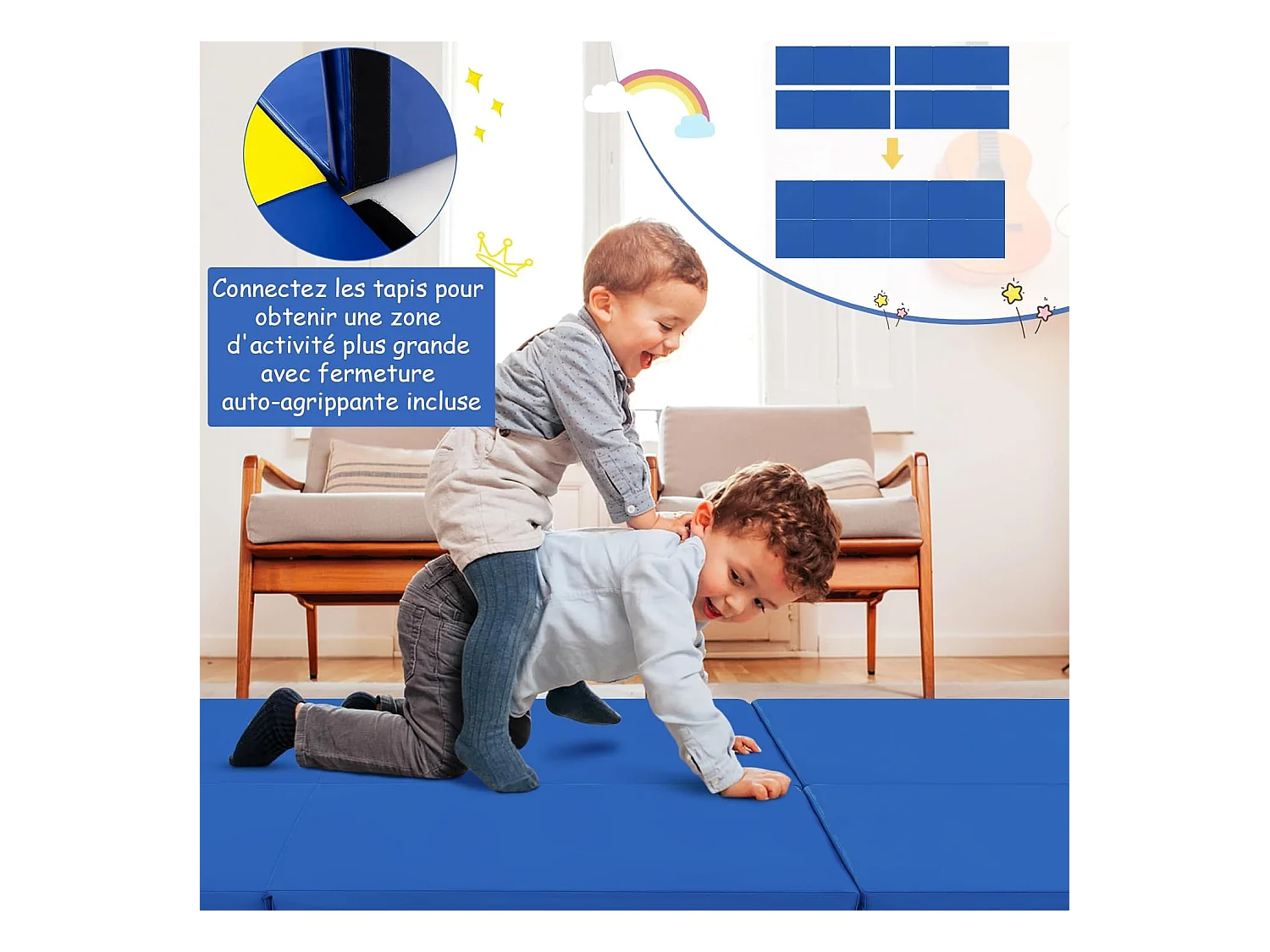 Tapis de yoga et de fitness - Viavito - 6mm - Bleu