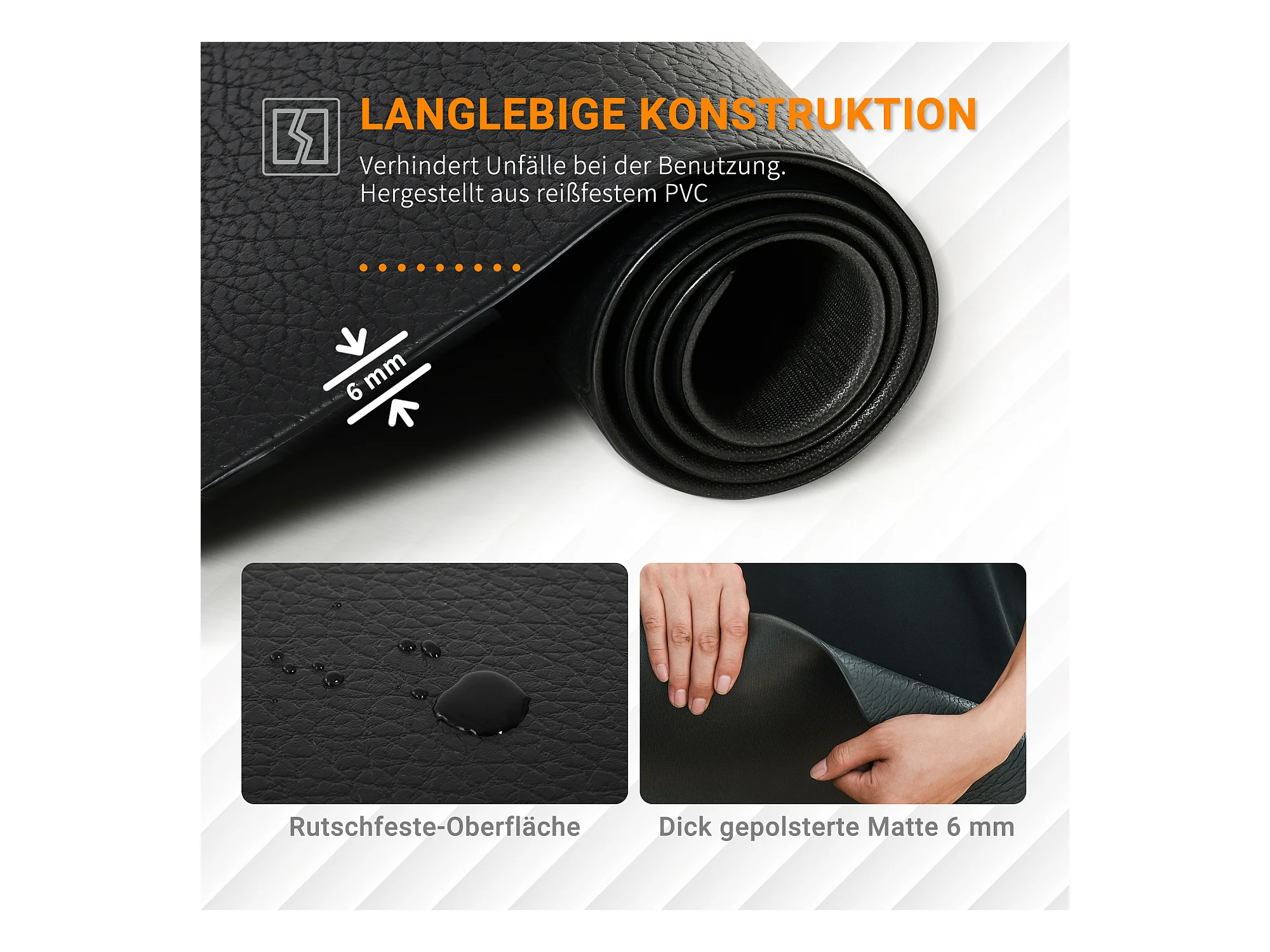 Tapis de protection pour équipement fitness, antidérapant et réducteur de bruit, PVC, noir (180x90x0.6cm)