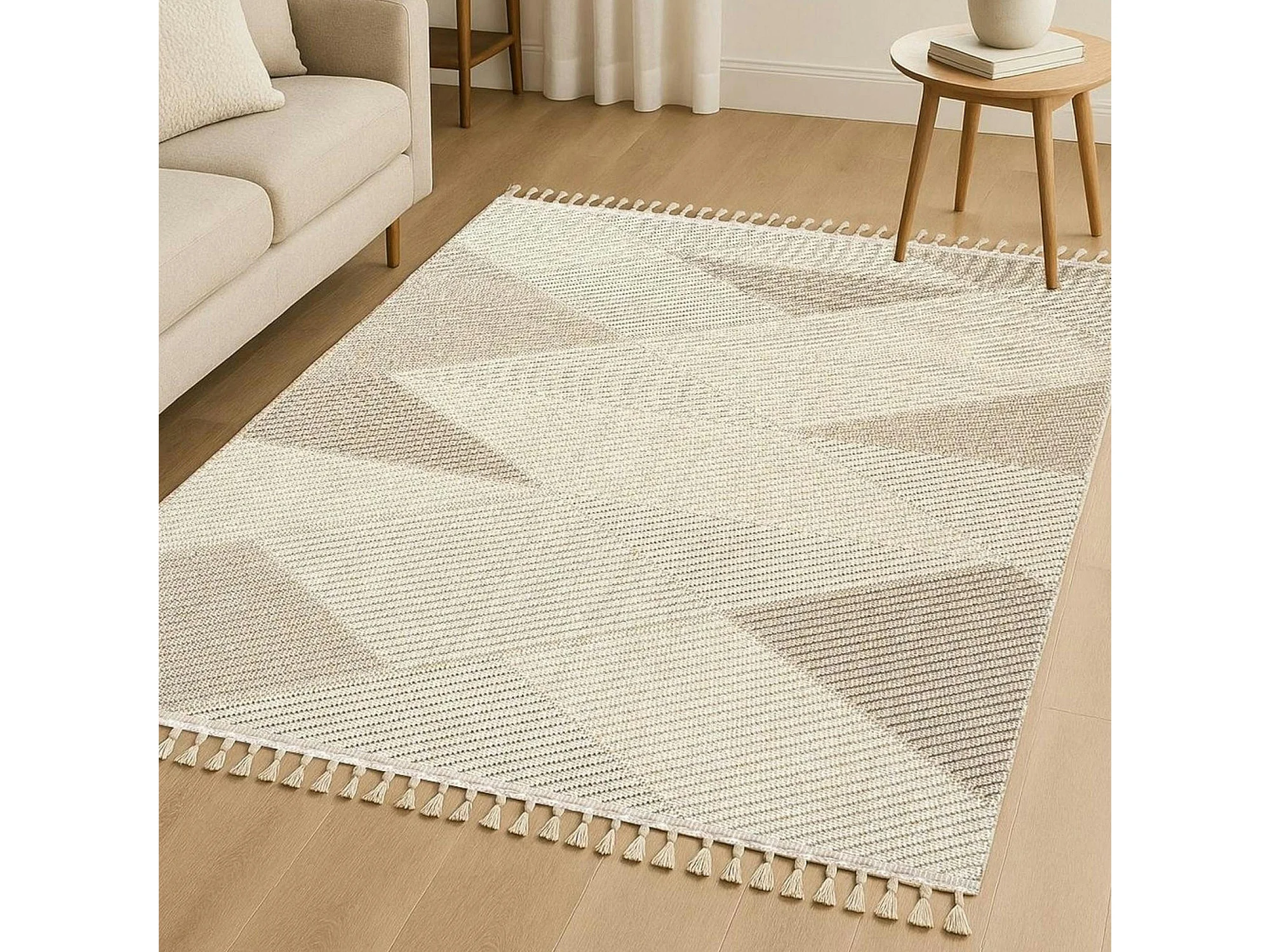 Tapis beige motifs losanges – franges, 120x180 cm ISTANBUL