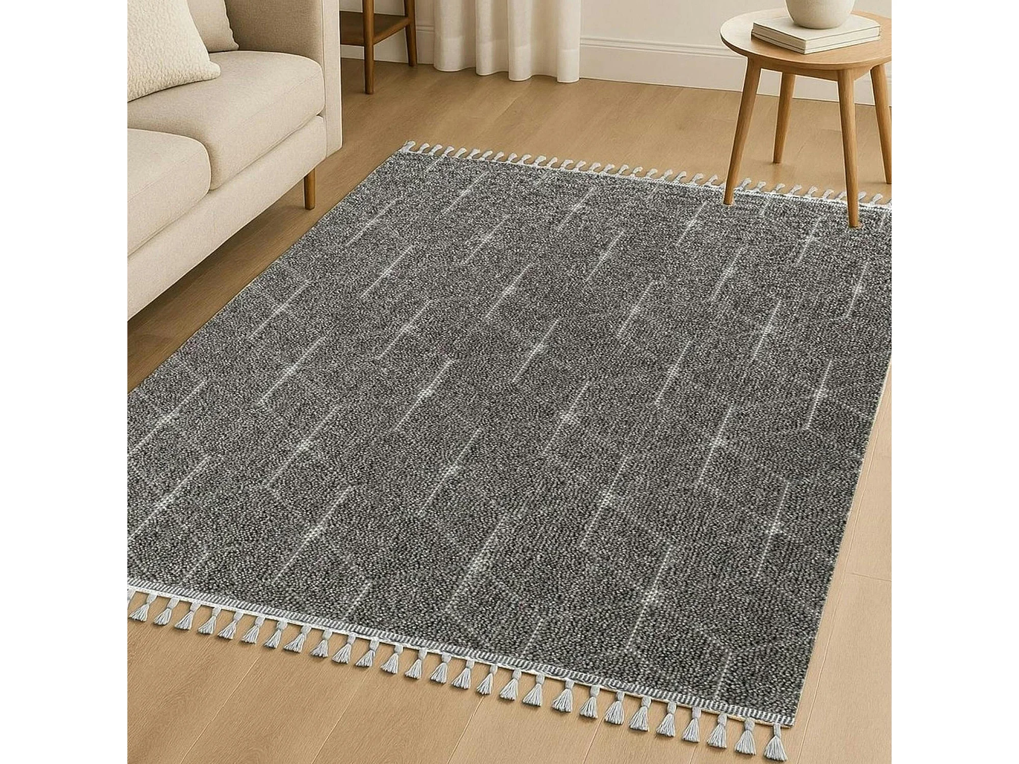 Tapis gris motifs losanges – franges, 120x180 cm ISTANBUL