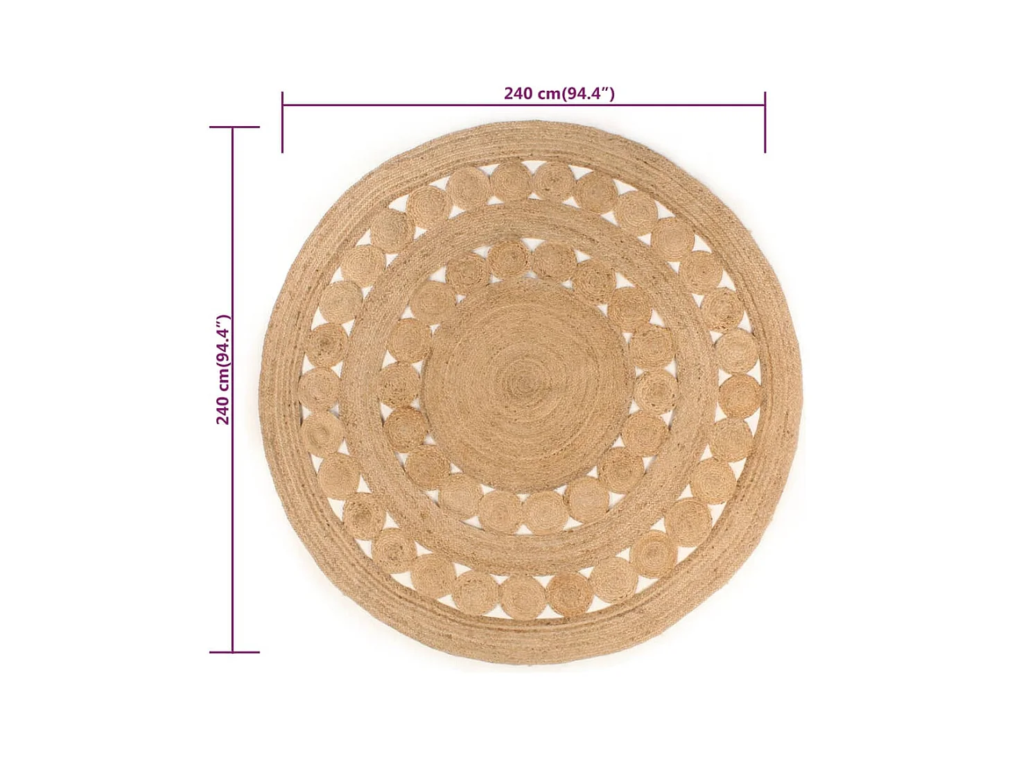 Tapis design tressé jute 240 cm rond
