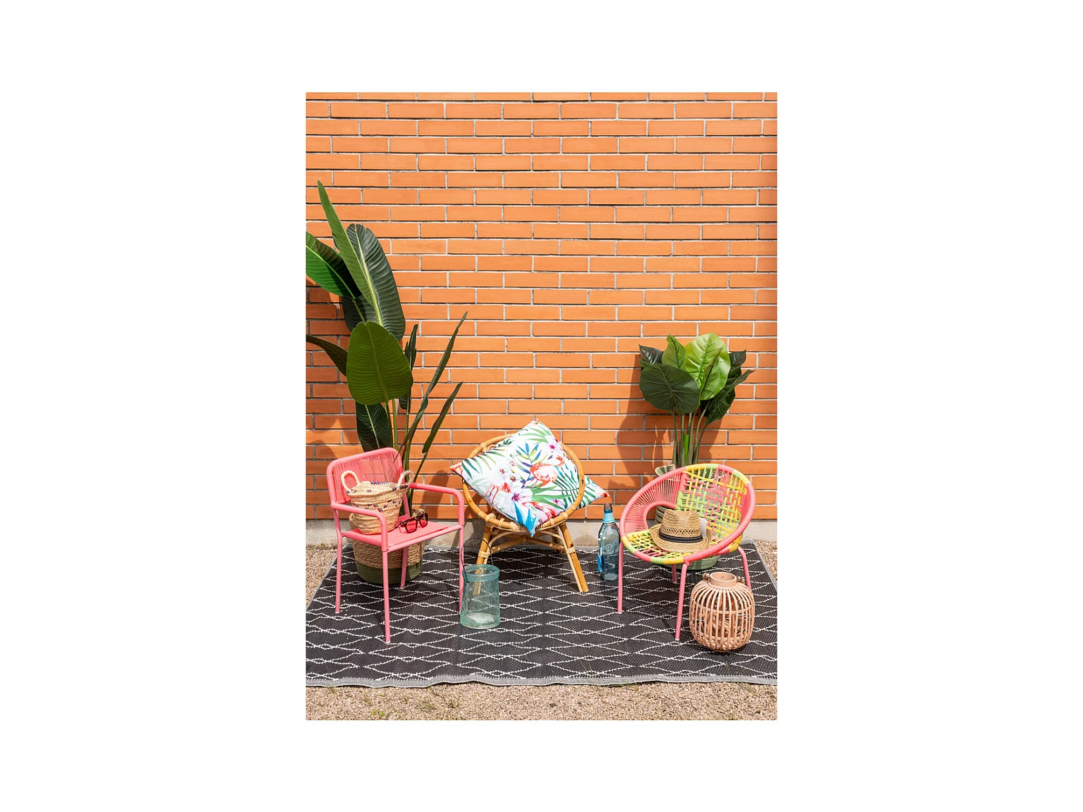 Tapis d'extérieur rectangulaire réversible motif Perse noir/blanc - 186 x 119 cm
