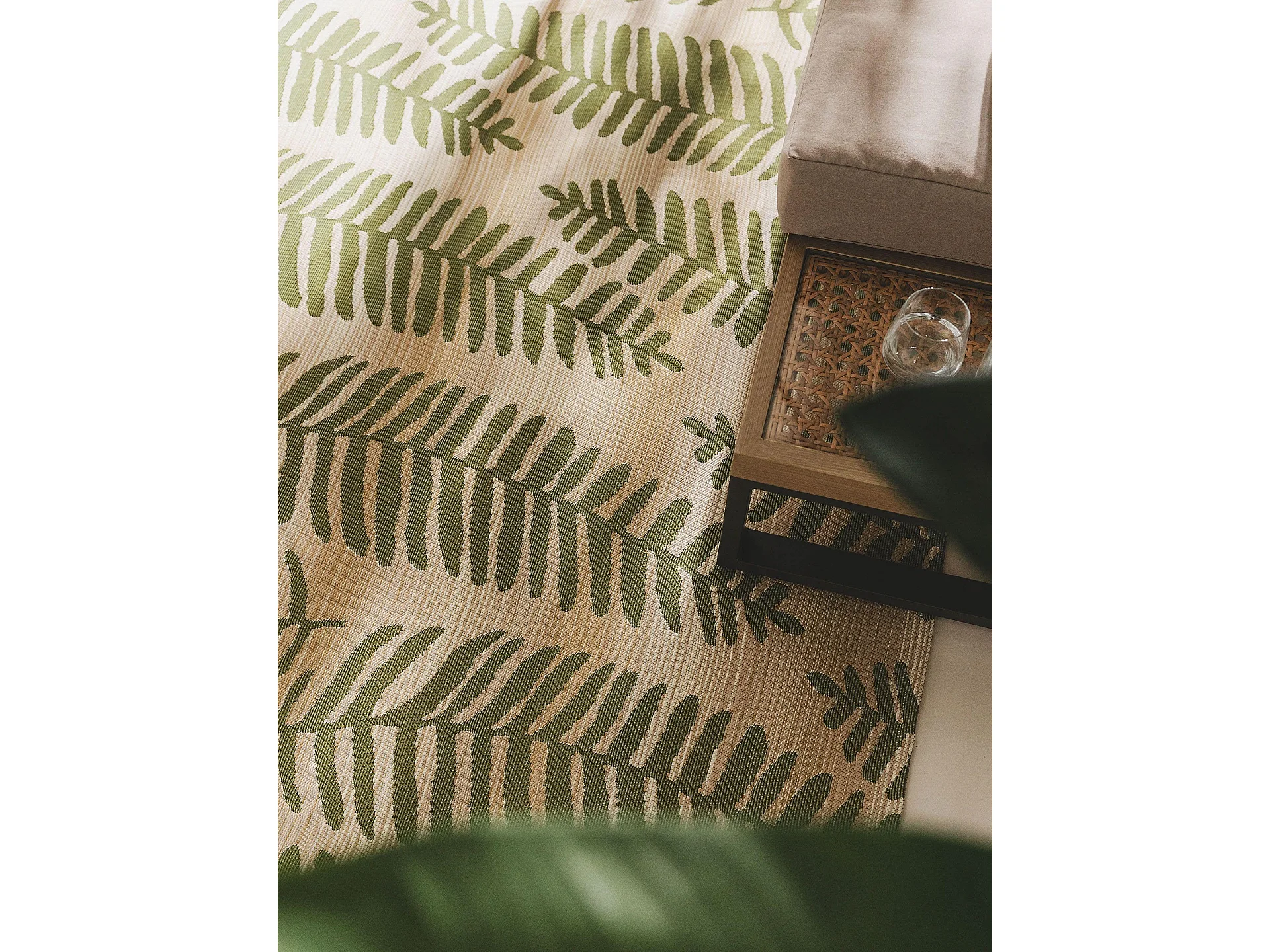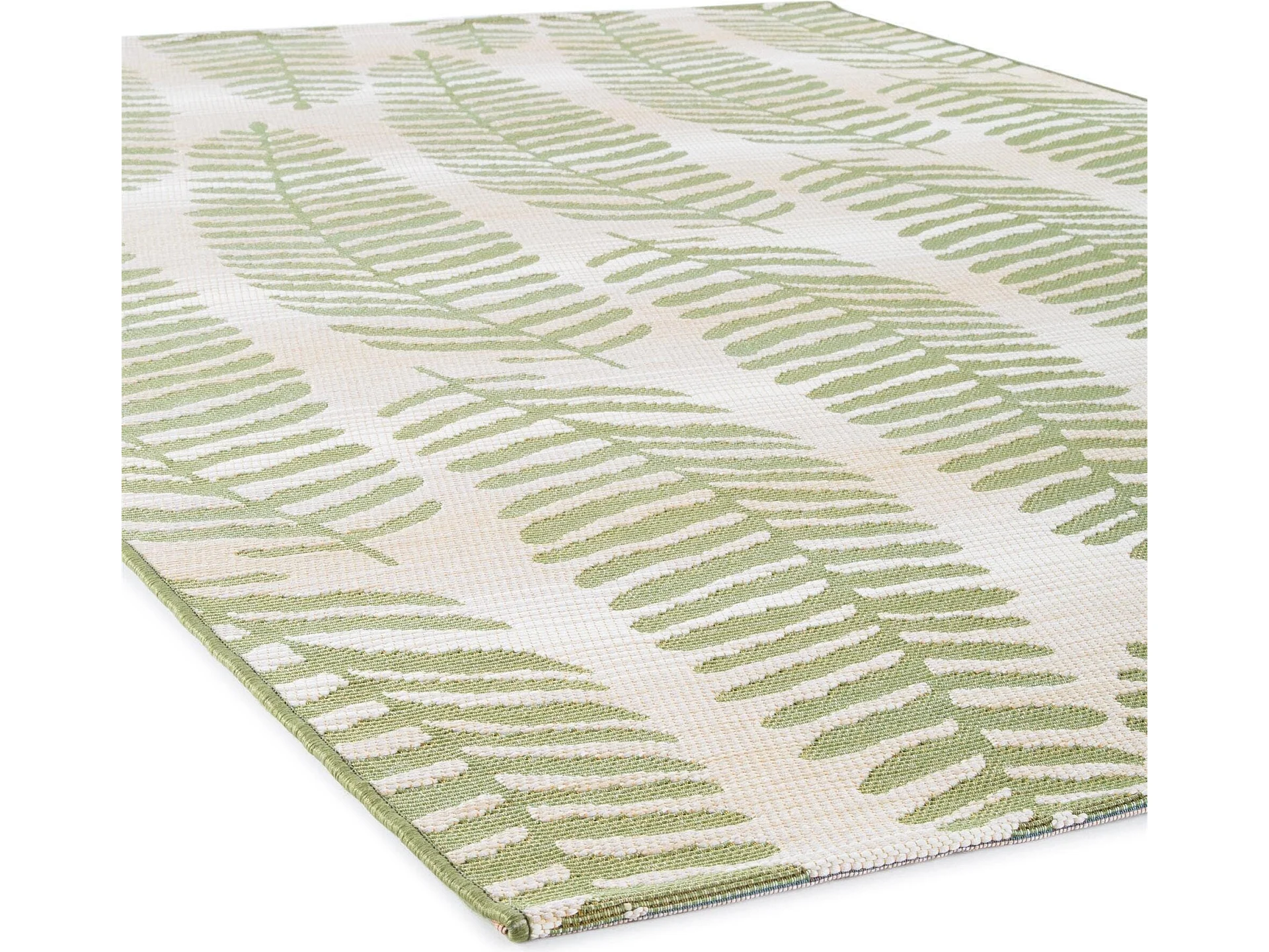 Tapis d'extérieur réversible imperméable dim. 365L x 274l cm motif feuillage sac transport motif feuillage PP vert crème