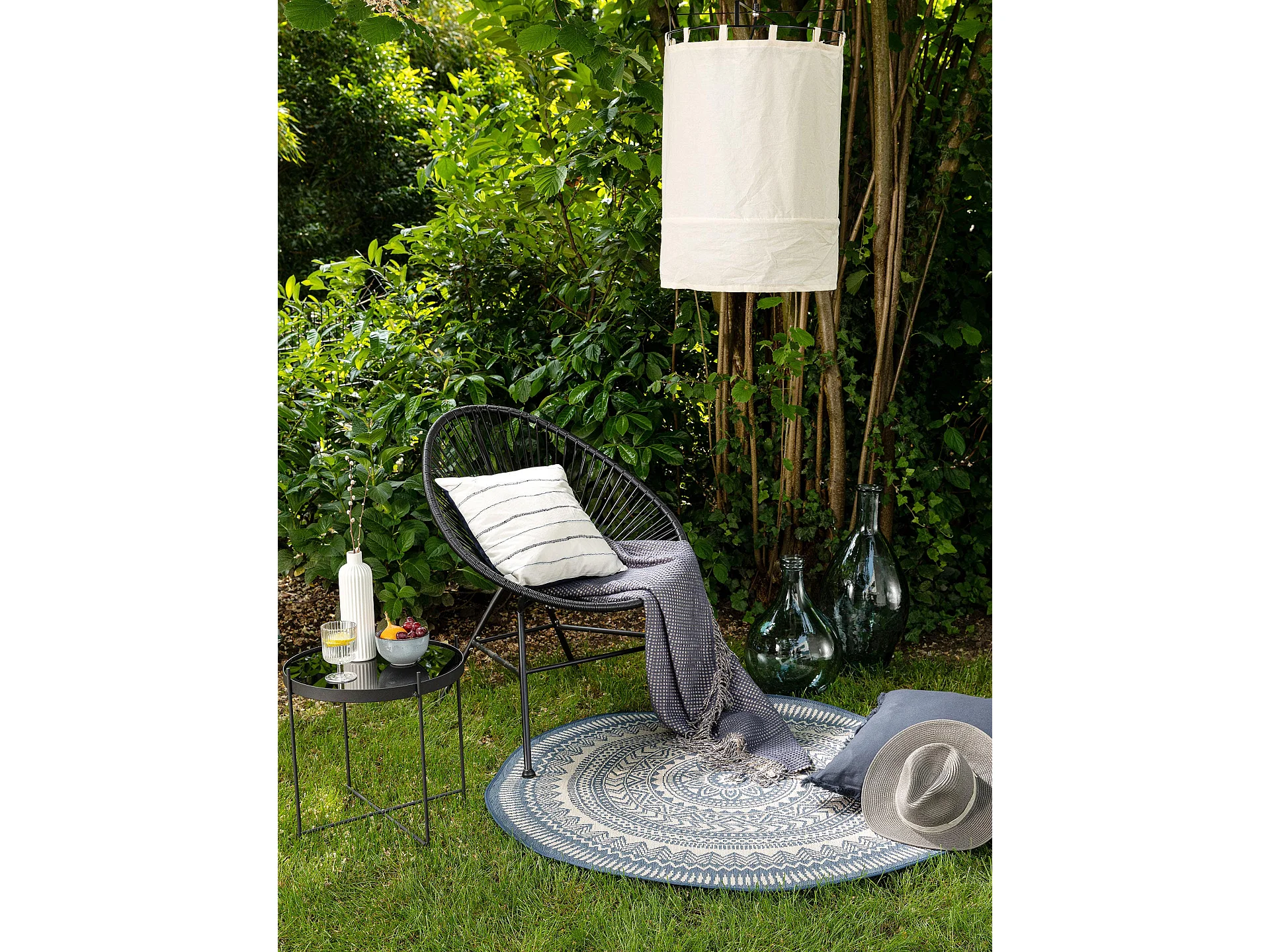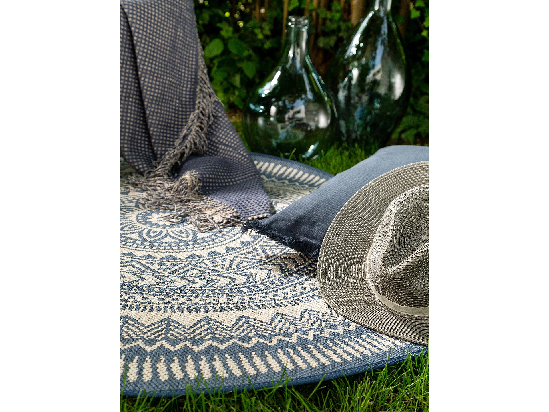Tapis d'extérieur & intérieur rond Cleo Bleu ø 120 cm rond
