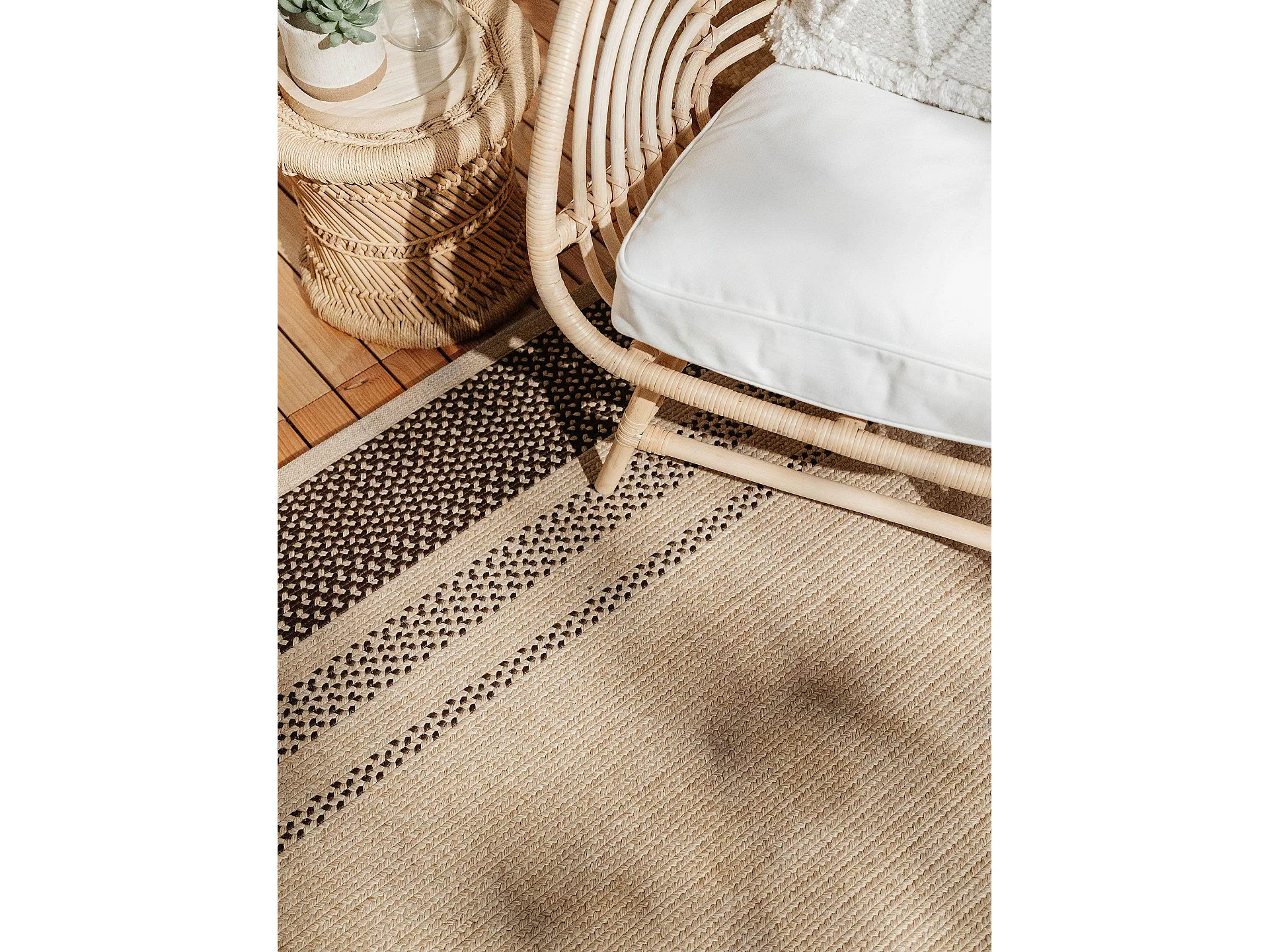 Tapis extérieur, kilim reversible 120x170 LYN2 AU REVERSIBLE marron et crème