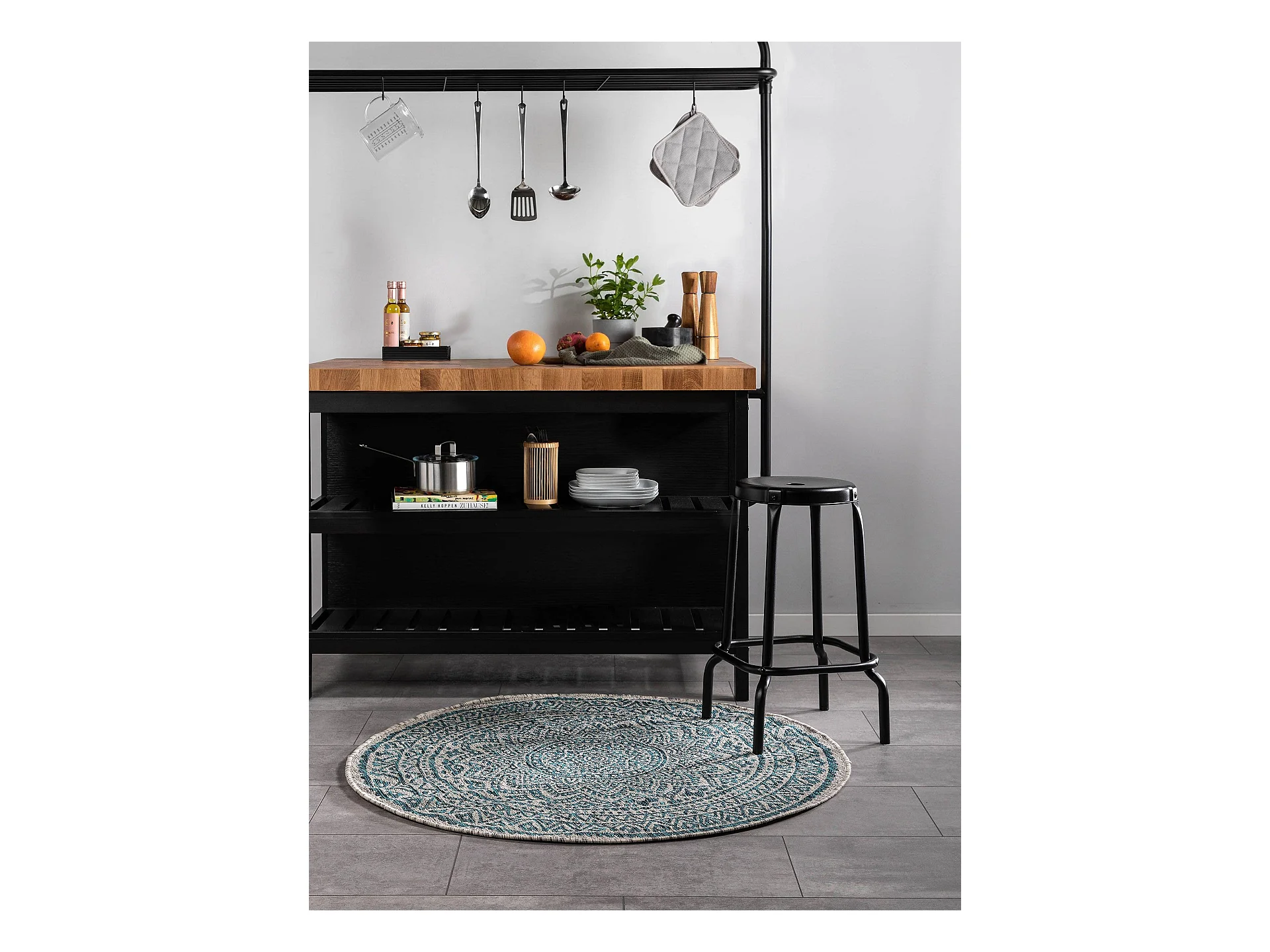 Tapis d'extérieur & intérieur rond Cleo Beige/Bleu ø 120 cm rond