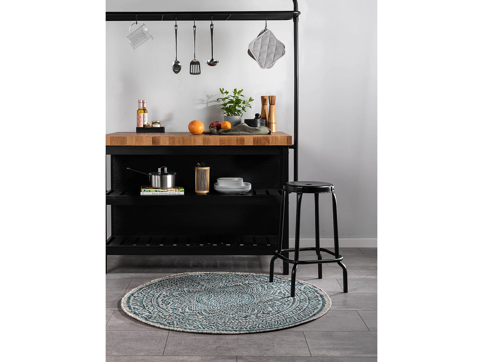 Tapis d'extérieur & intérieur rond Cleo Beige/Bleu ø 150 cm rond