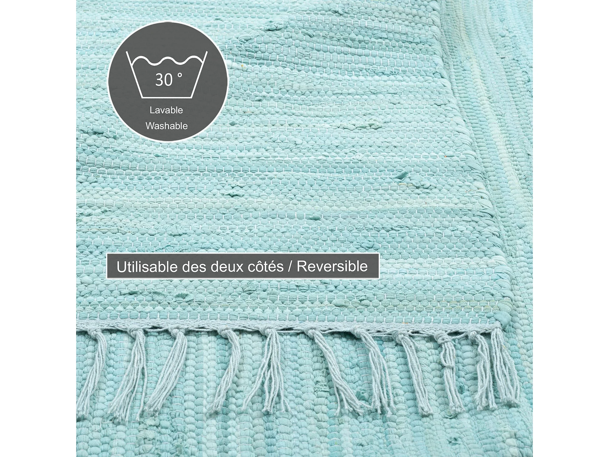 Tapis en coton tissé à la main et réversible 90x160 cm turquoise Happy Cotton