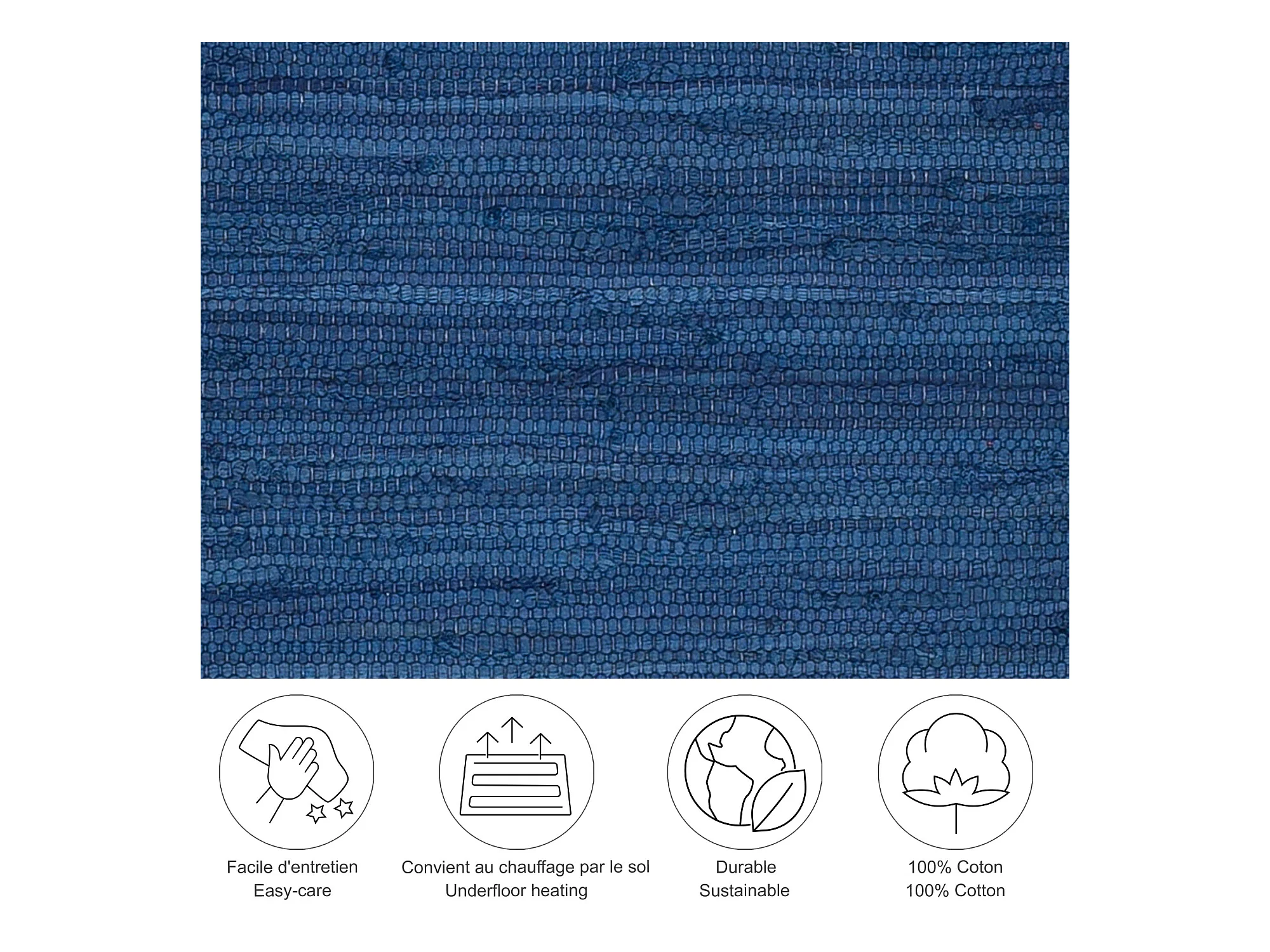 Tapis en coton tissé à la main et réversible 160x230 cm bleu Happy Cotton