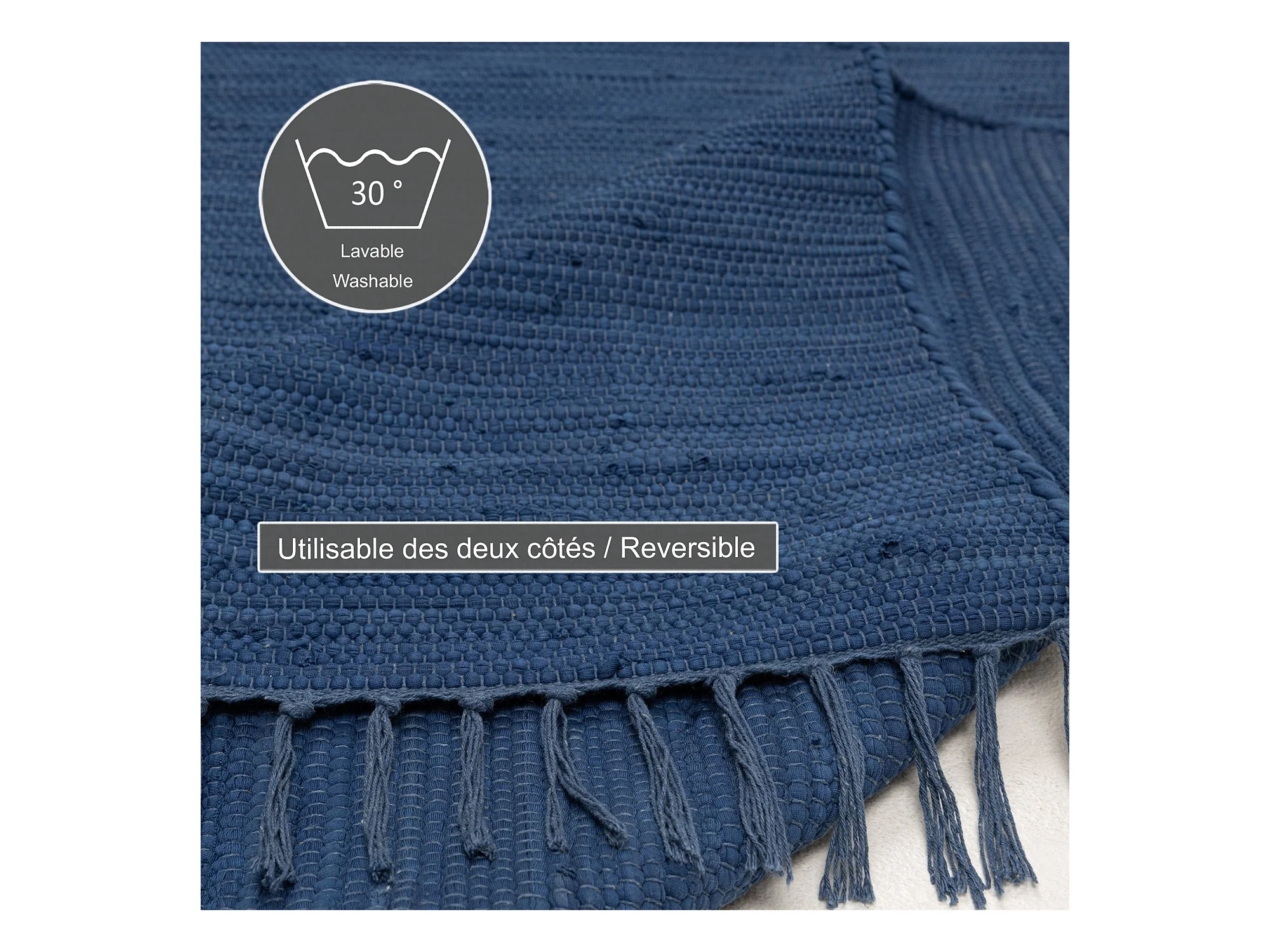 Tapis en coton tissé à la main et réversible 90x160 cm bleu Happy Cotton