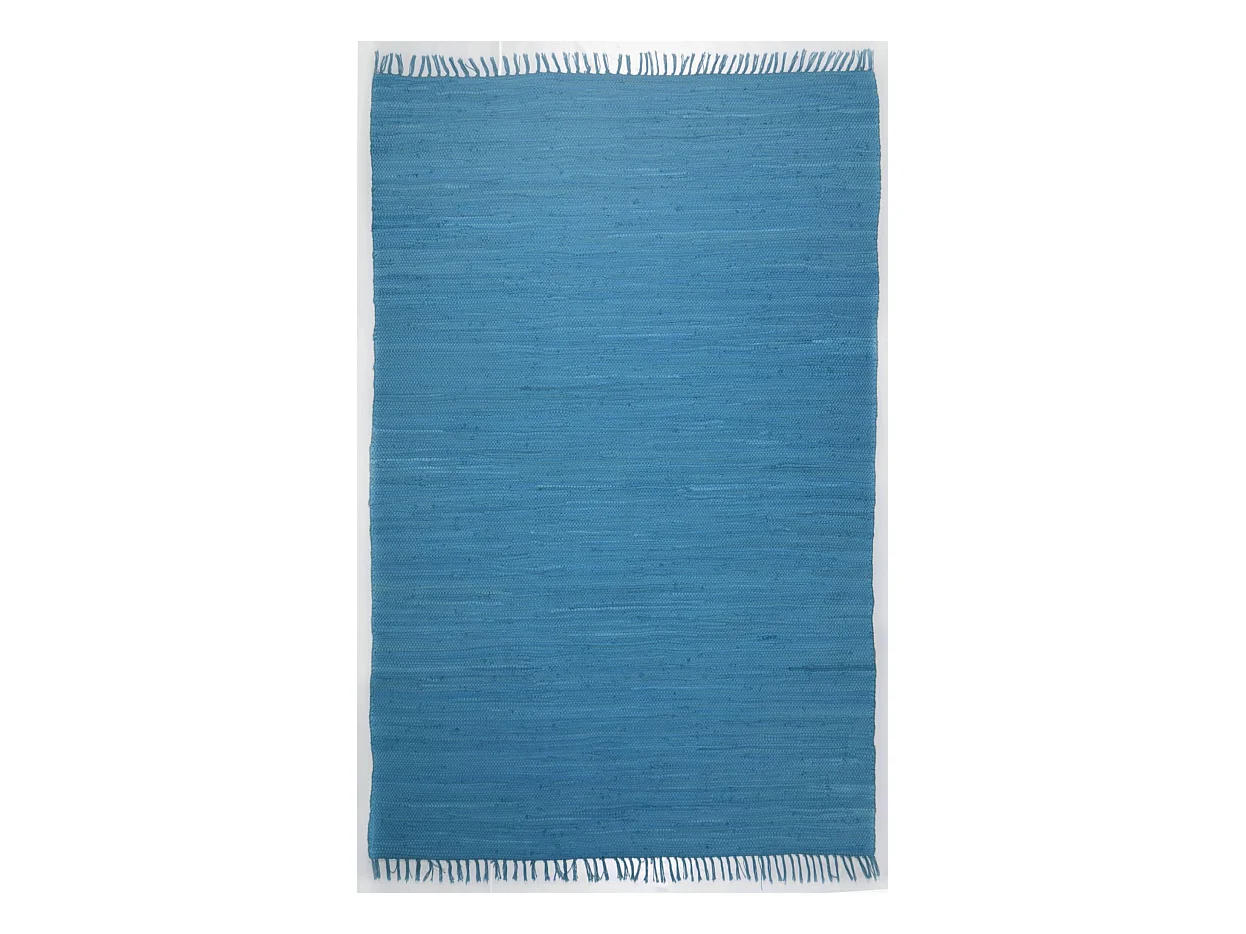 Tapis en coton tissé à la main et réversible 90x160 cm bleu Happy Cotton