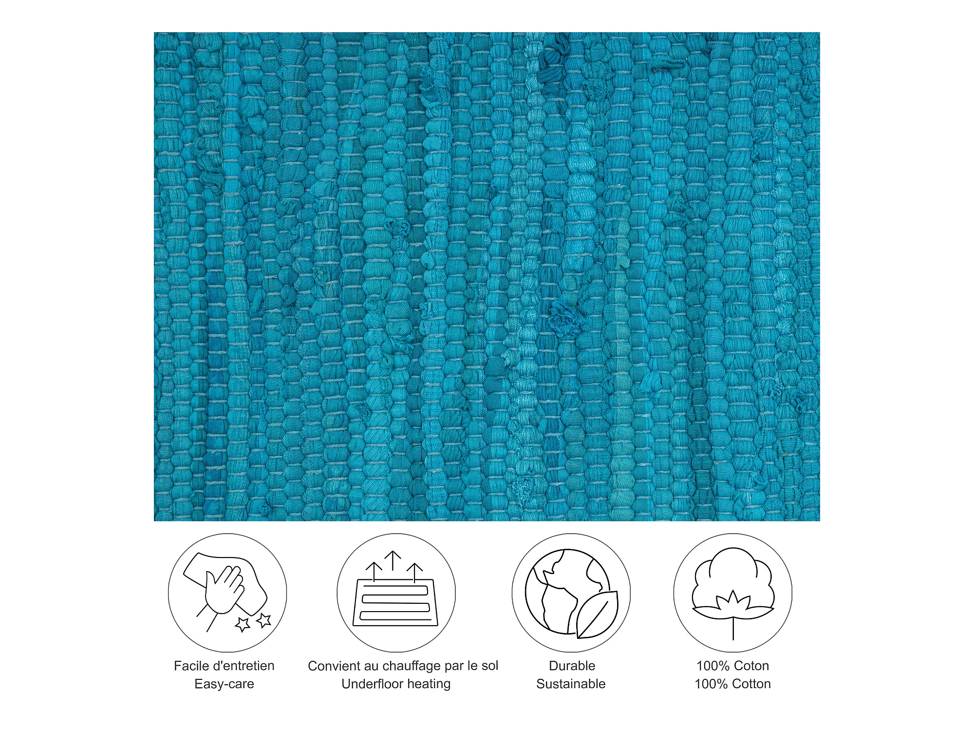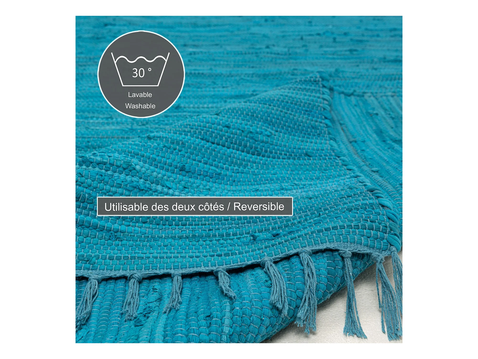 Tapis en coton tissé à la main et réversible 90x160 cm turquoise Happy Cotton