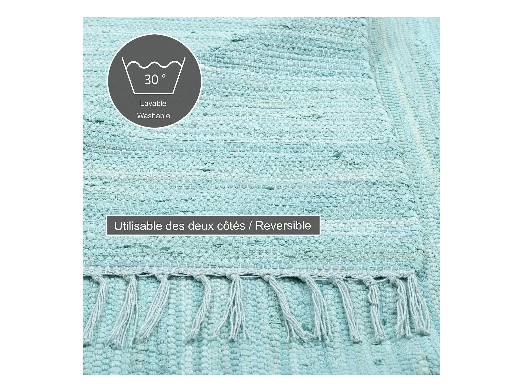 Tapis en coton tissé à la main et réversible 90x160 cm turquoise Happy Cotton
